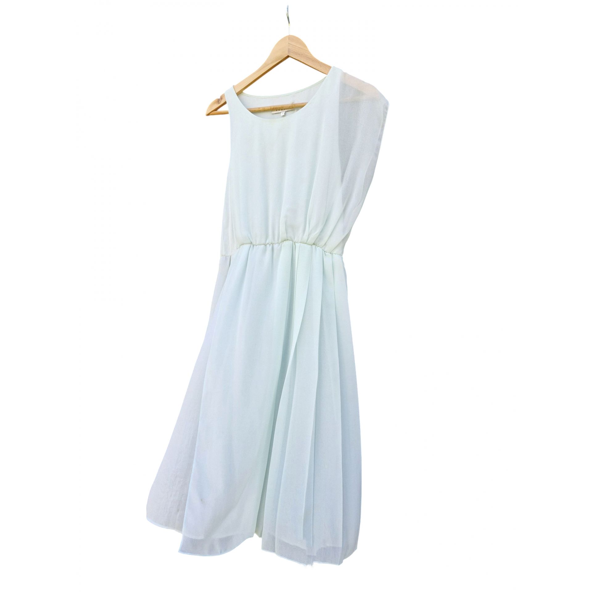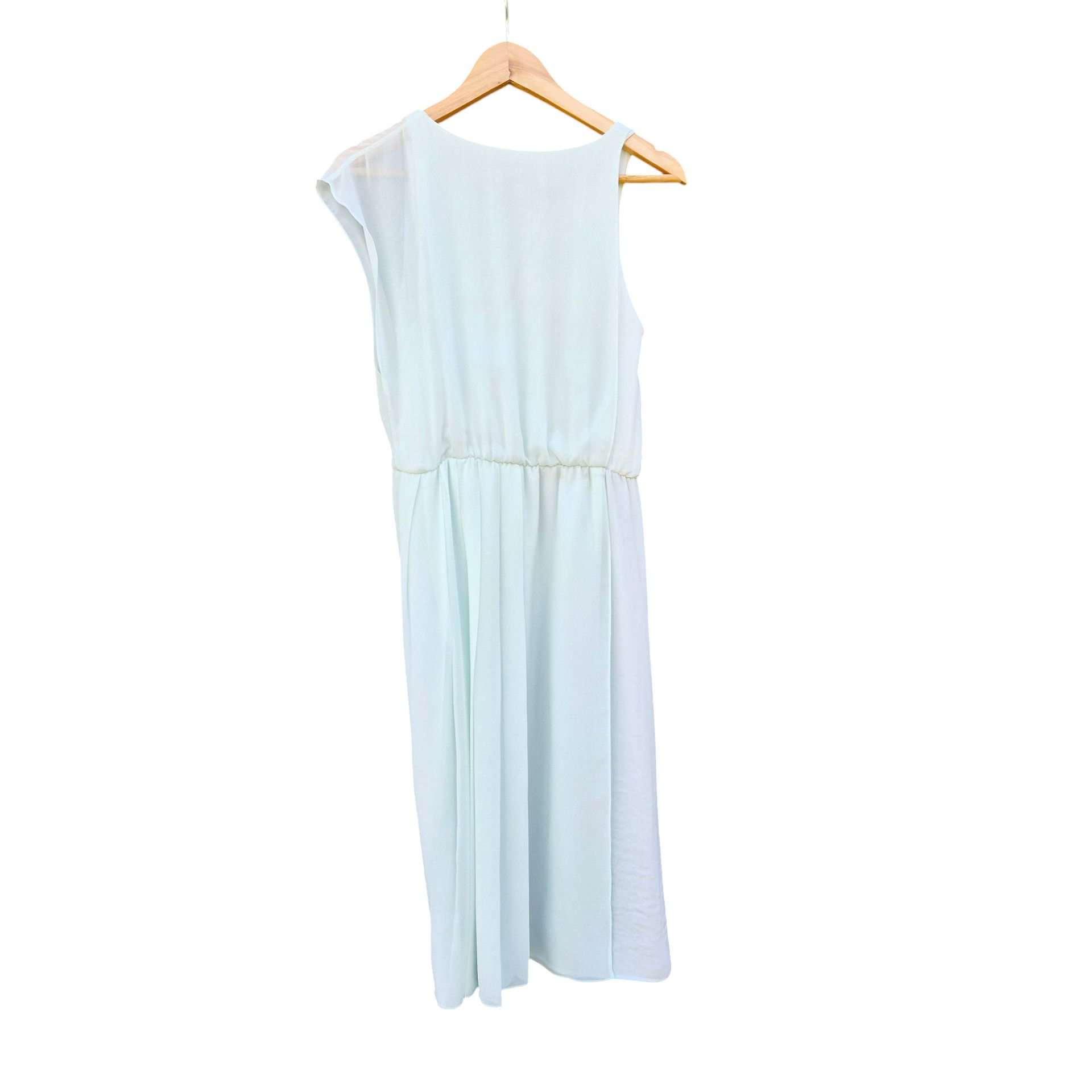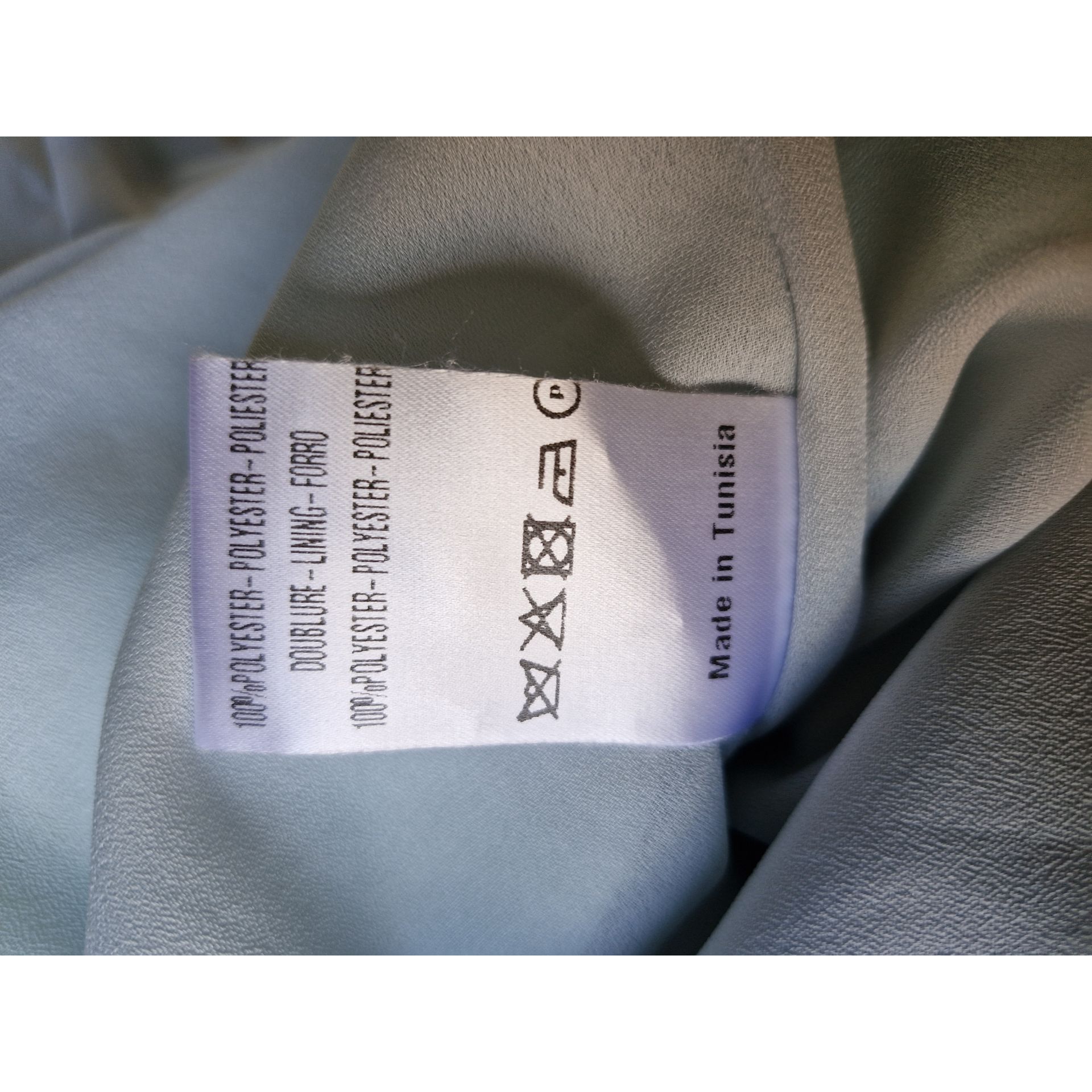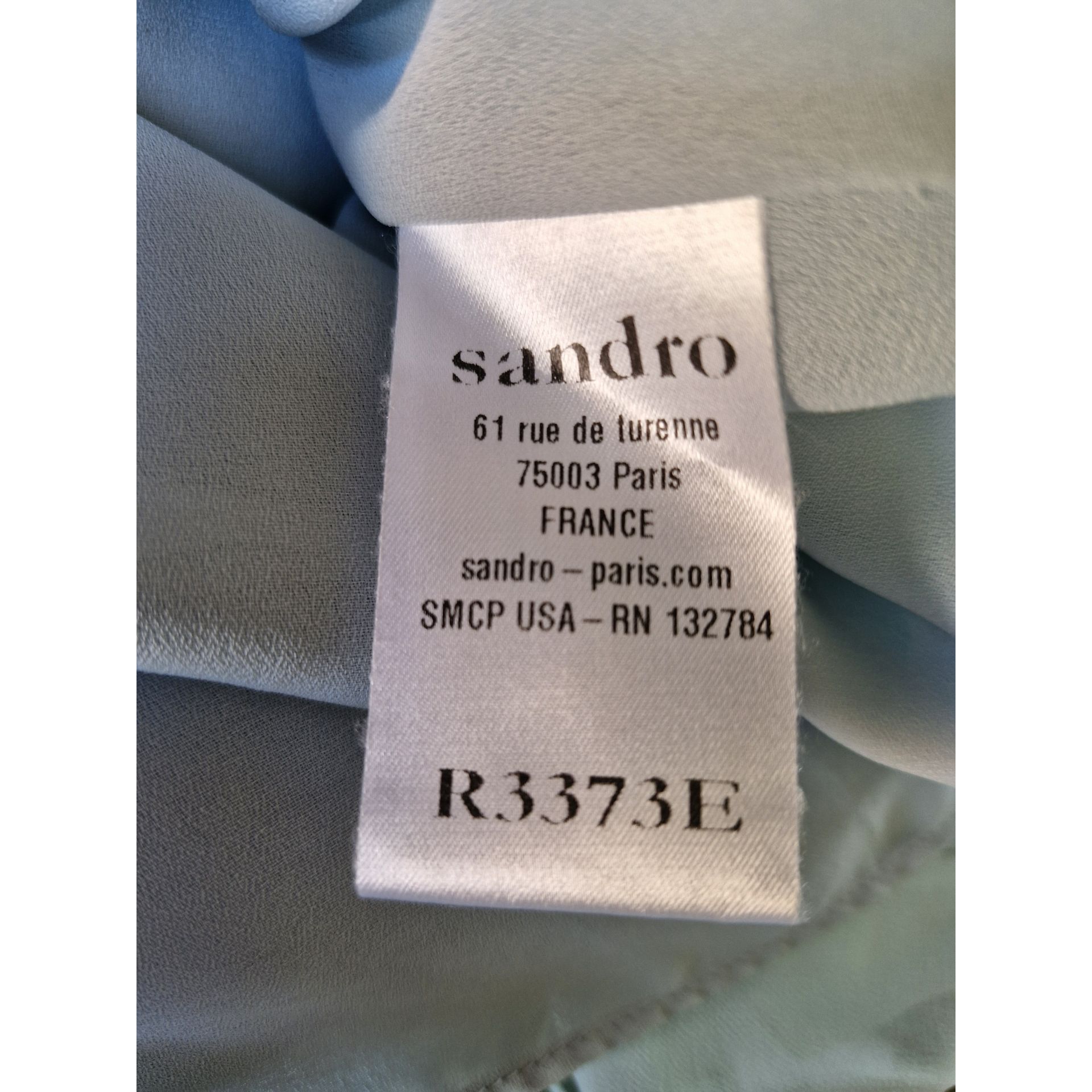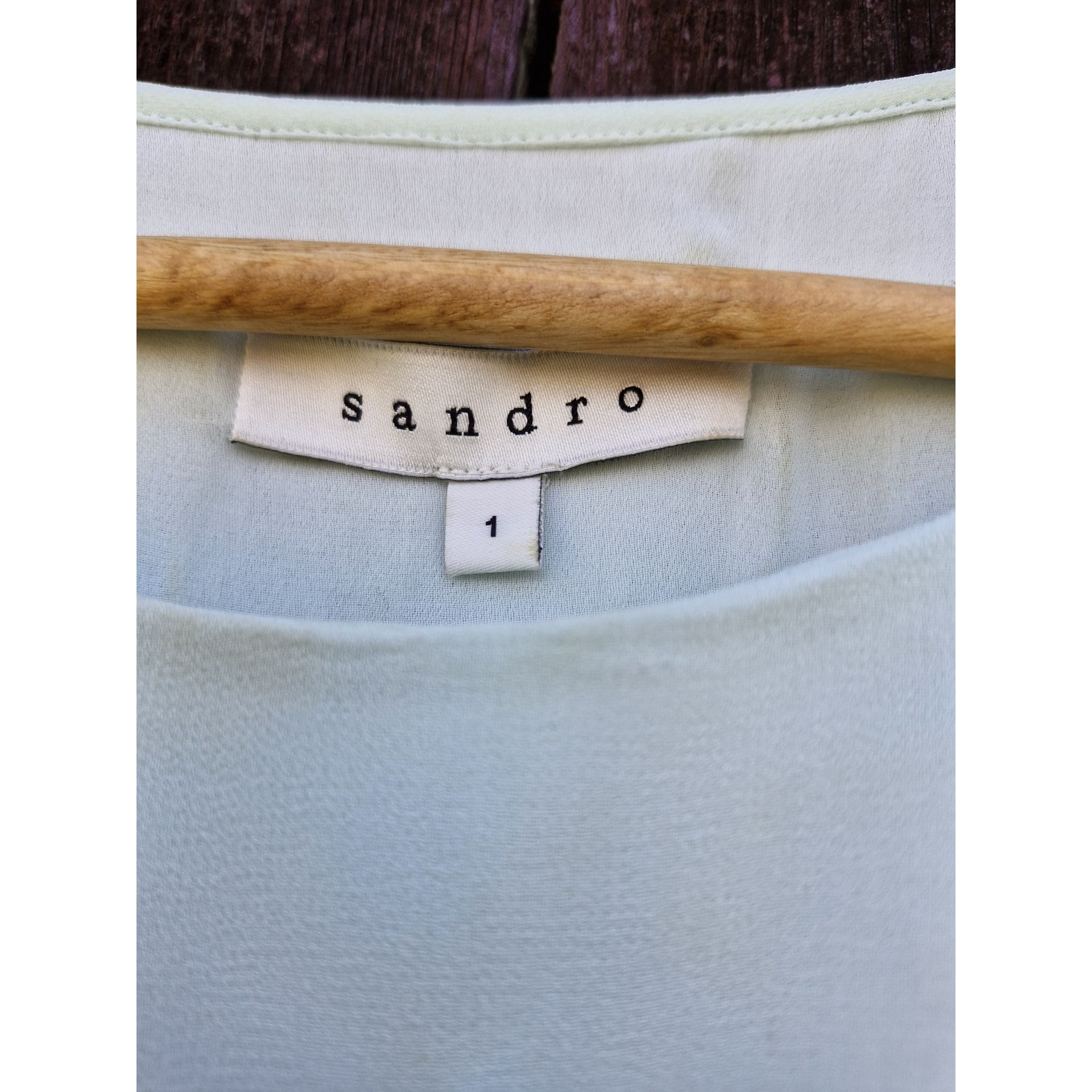 Piękna sukienka Sandro Paris w kolorze seledynowym. Kontrastujące rękawy, elastyczna talia, spódnica plisowana z kopertowym tyłem. Material lekko elastyczny. Poliester. Sukienka na podszewce
