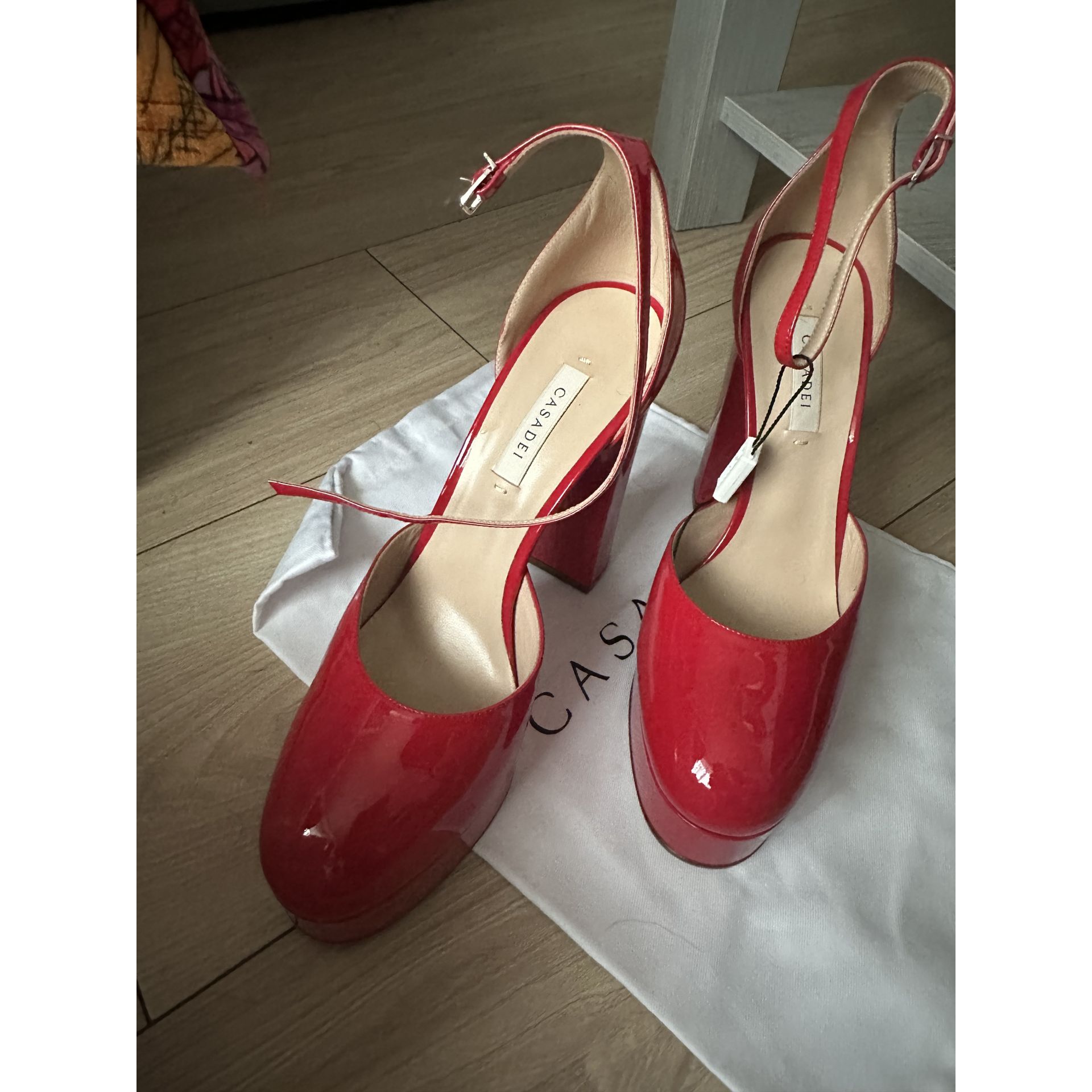 Sprzedam buty na platformie Casadei 39 czerwone kolor Tiffany Lipstick z lakierowanej skóry zapinane na kostce model Articolo pellame kupione na vitkac.com rozmiar 39, nowe, nigdy nie ubrane tylko przymierzane