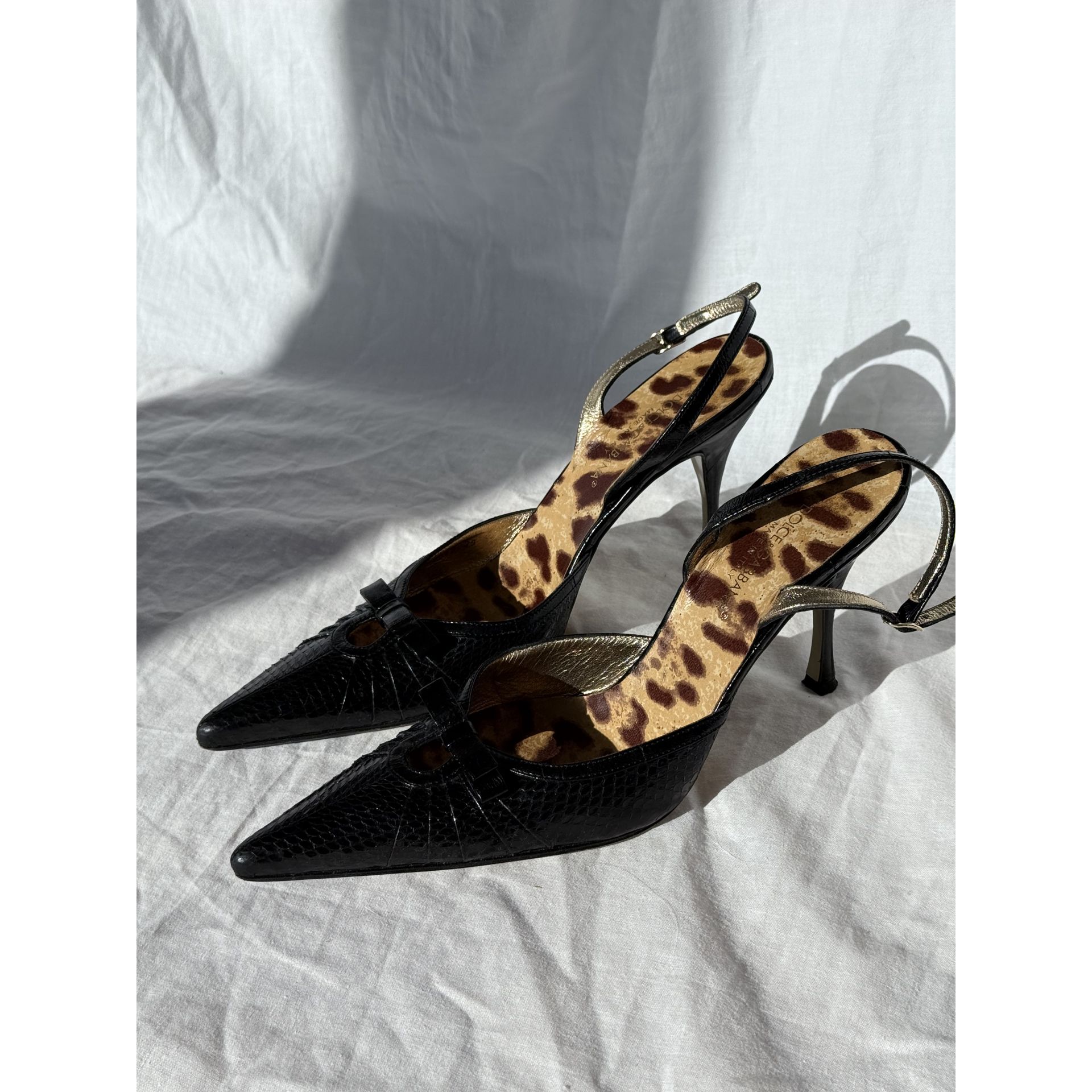 Przepiękne bardzo kobiece szpilki z odkrytą piętą i spiczastymi noskami z Dolce&Gabbana.