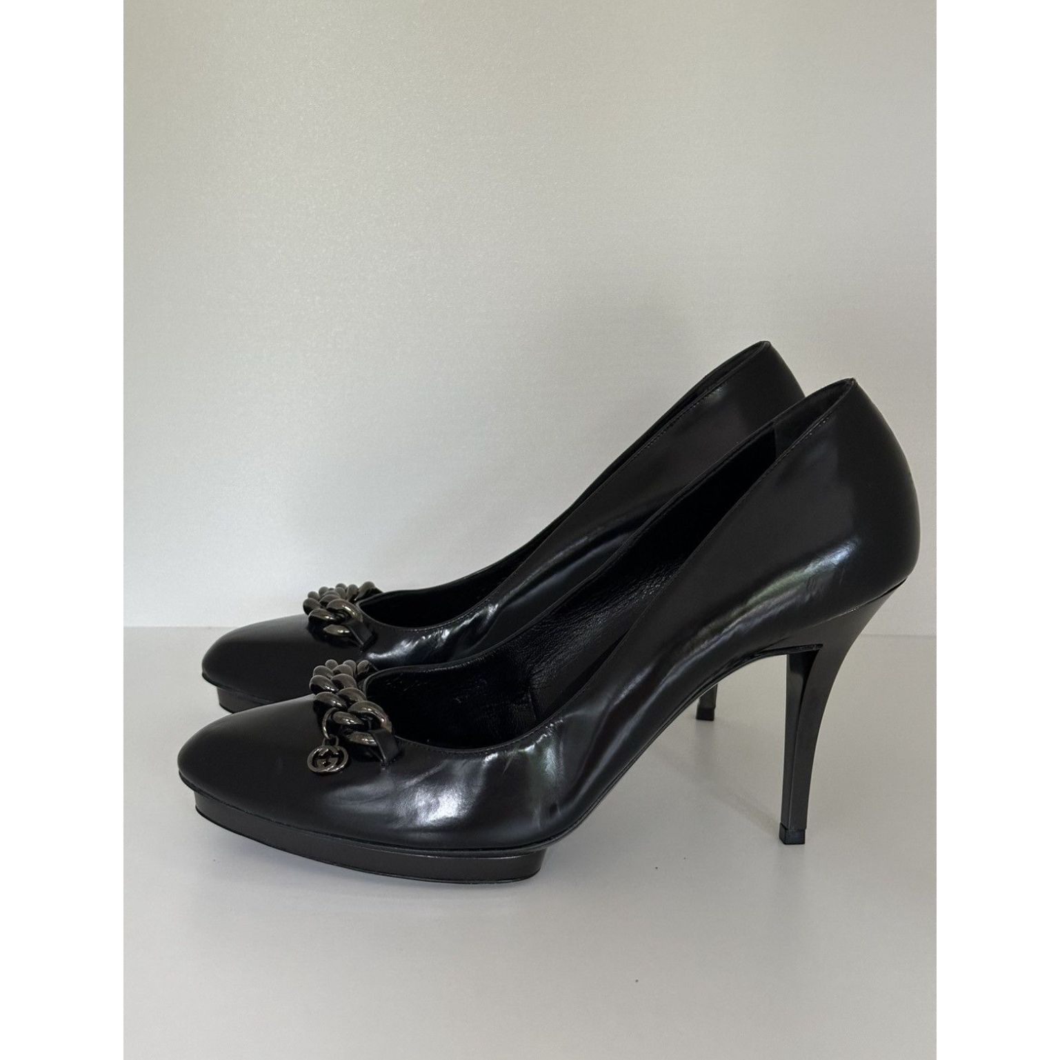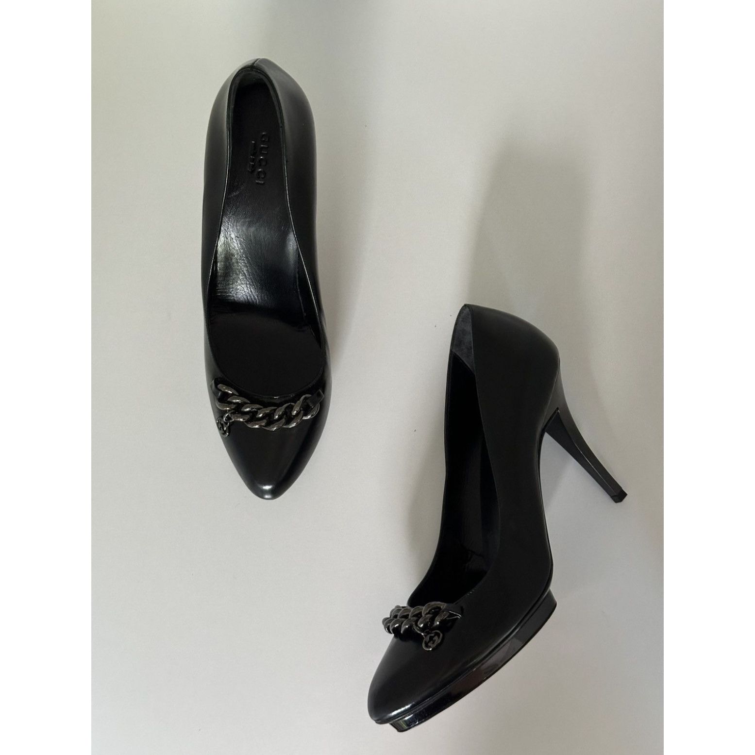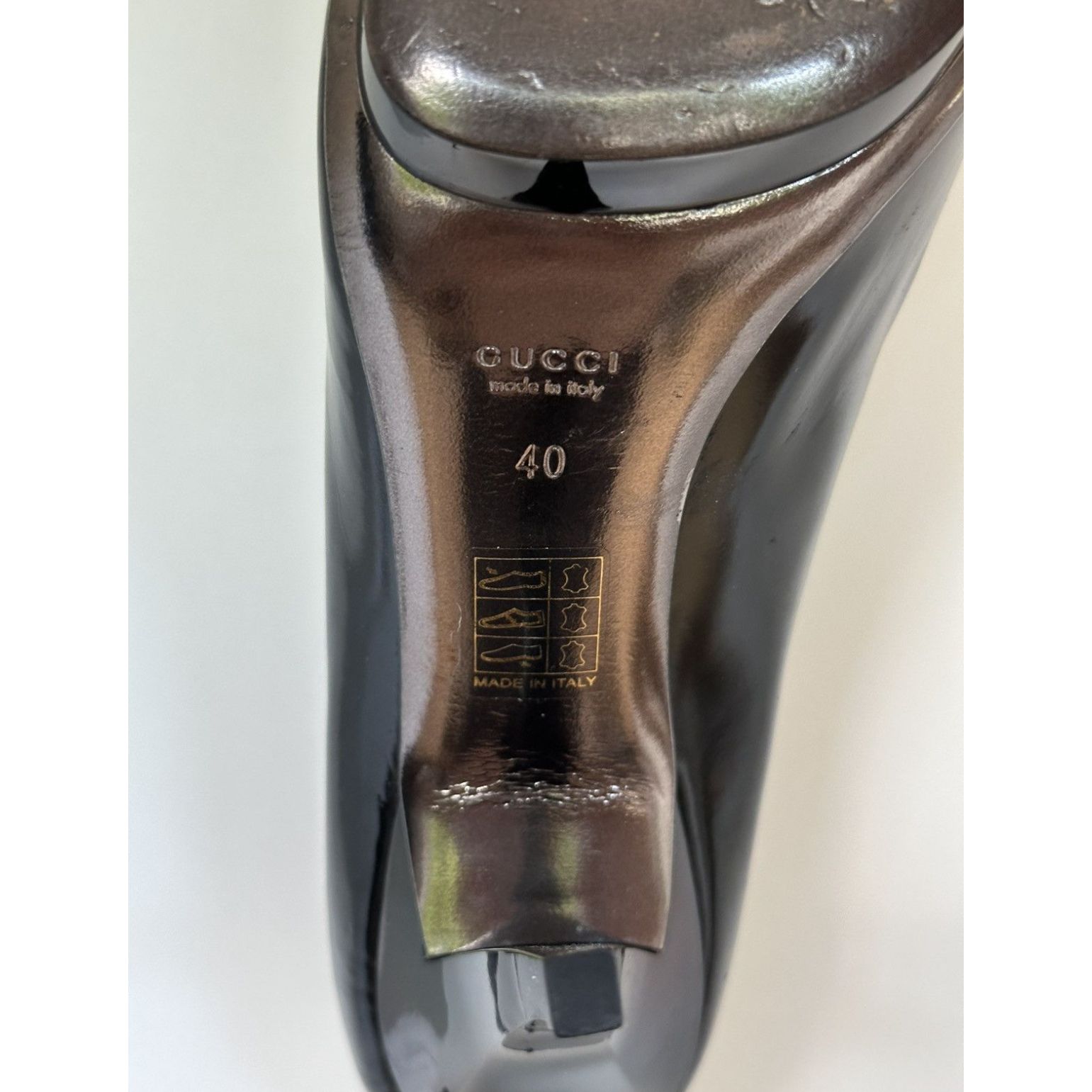 Czółenka Gucci z lakierowanej skóry, ozdobione metalowym logo, w zestawie z pudełkiem.