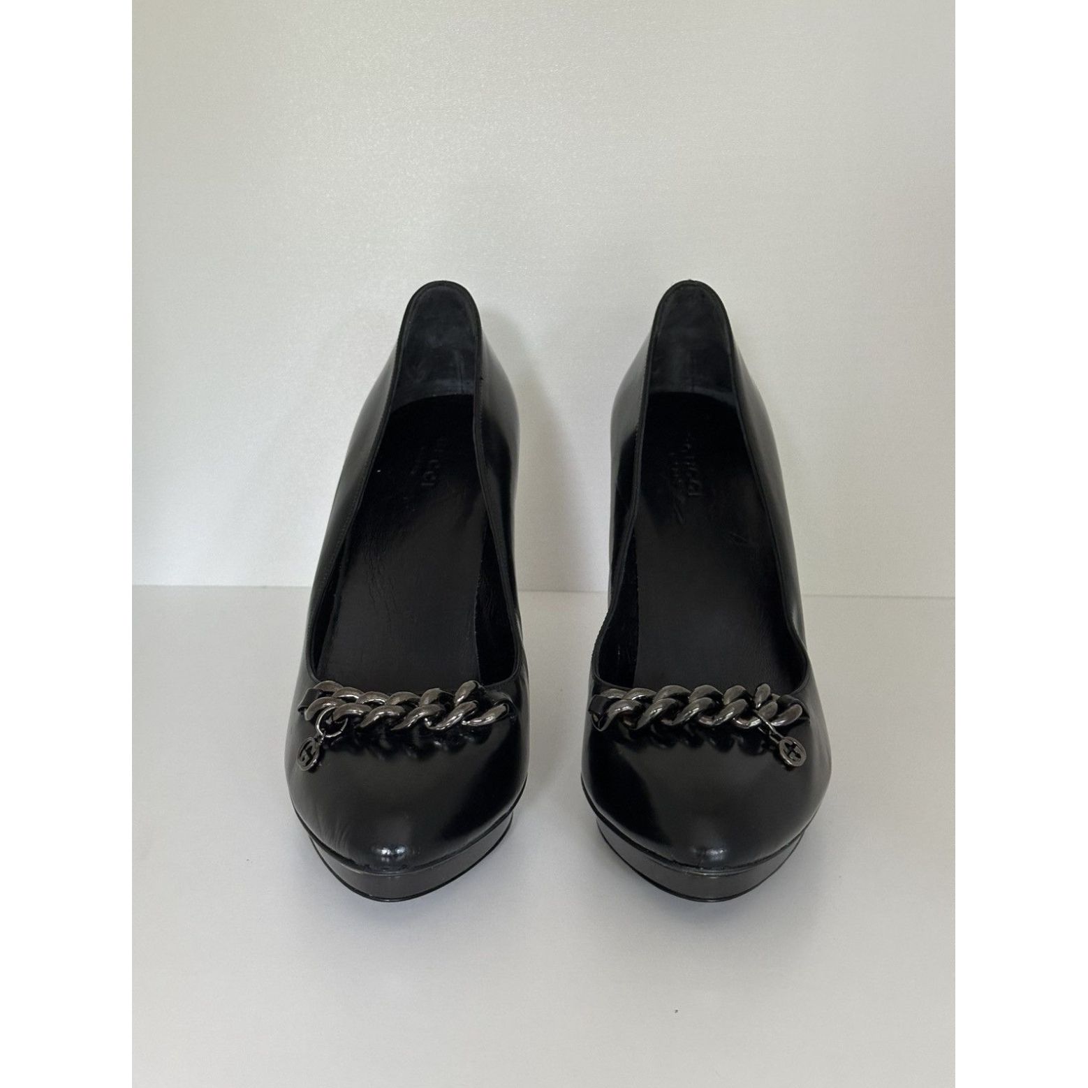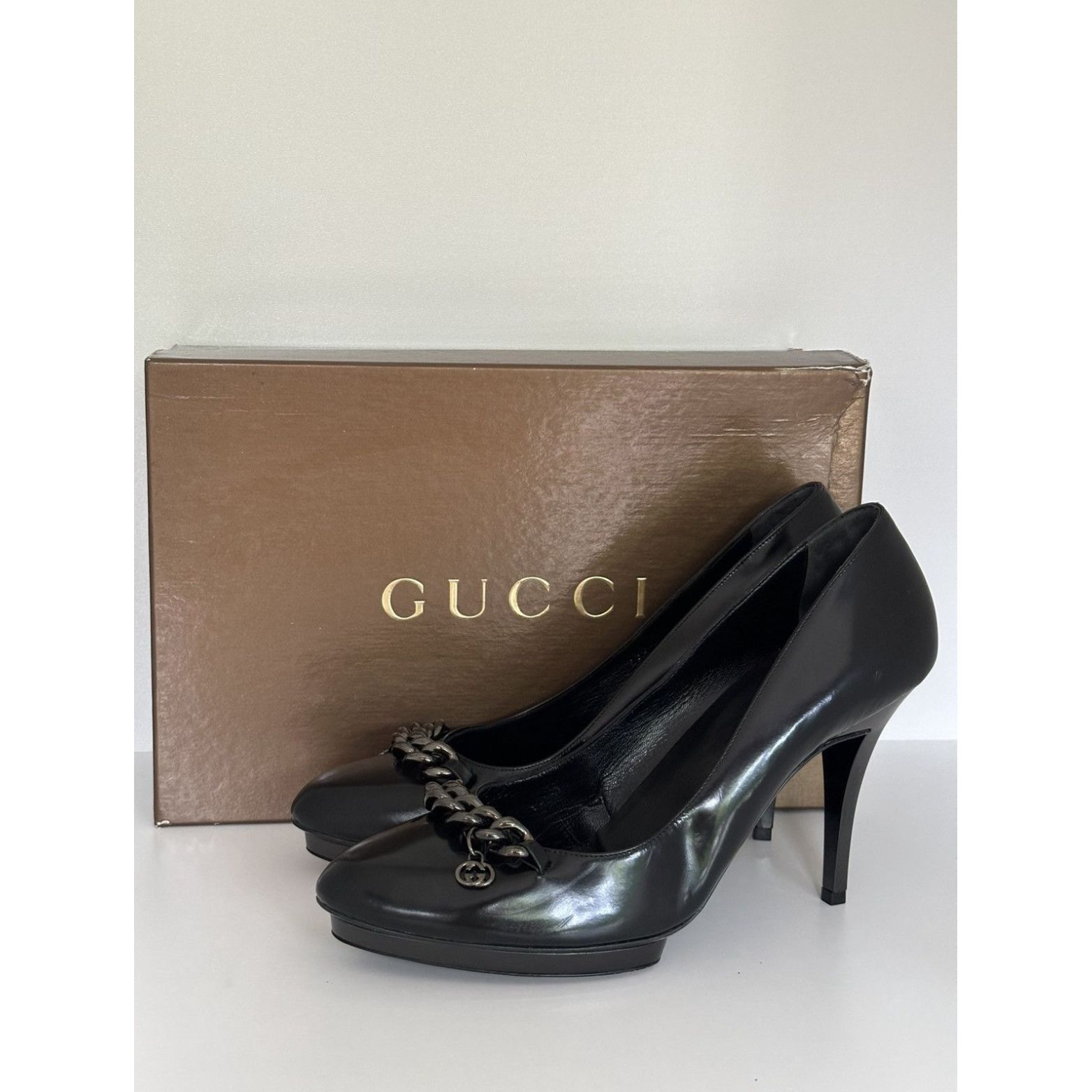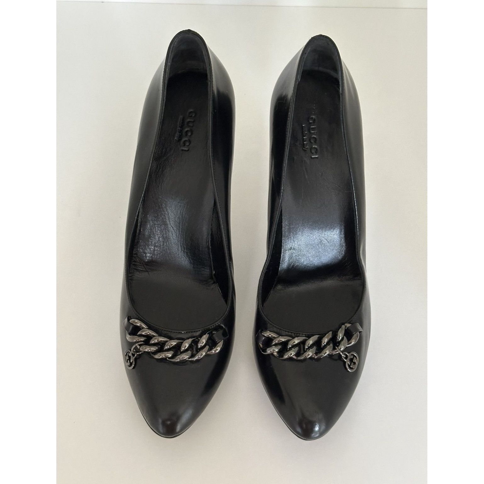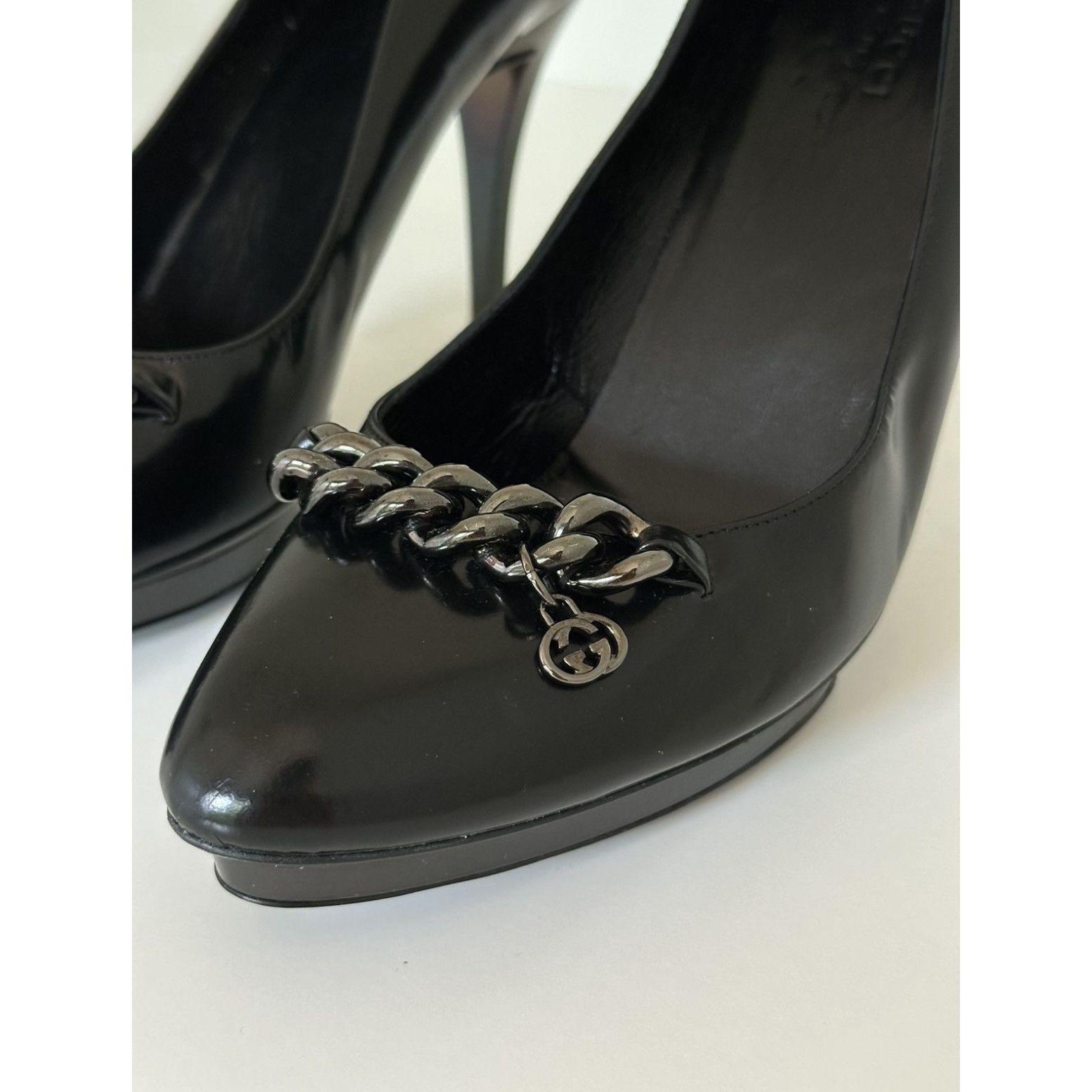 Czółenka Gucci z lakierowanej skóry, ozdobione metalowym logo, w zestawie z pudełkiem.