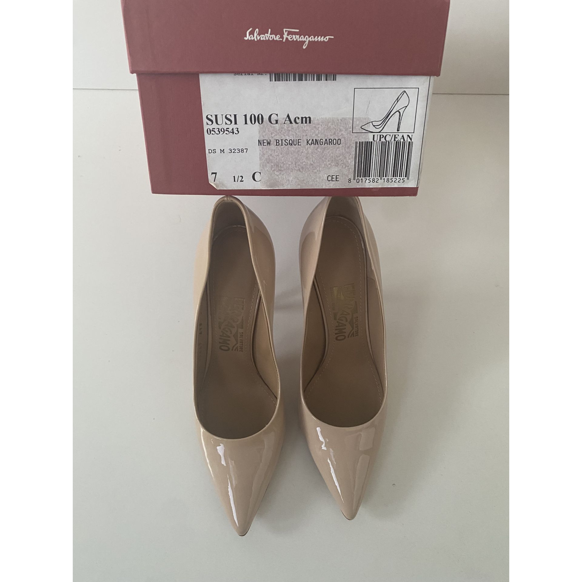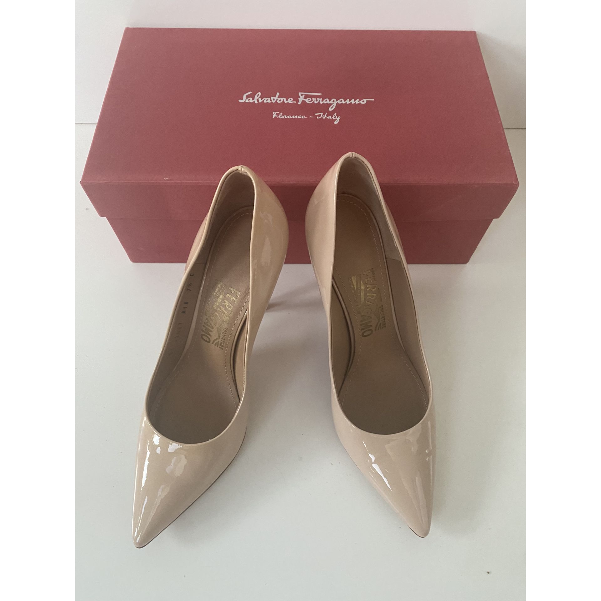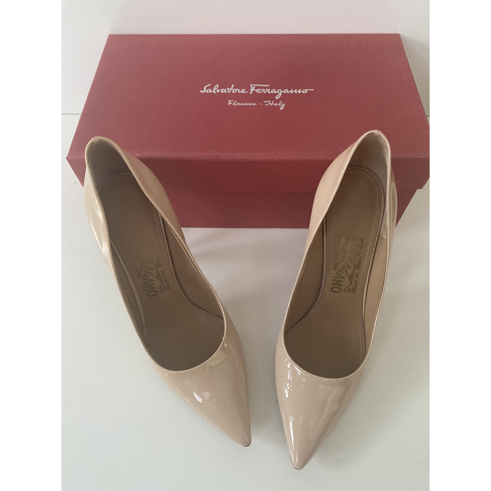 Klasyczne szpilki Ferragamo w pięknym, beżowym kolorze. Doskonale wyprofilowane, dzięki czemu, mimo wysokiego obcasa są niezwykle wygodne.