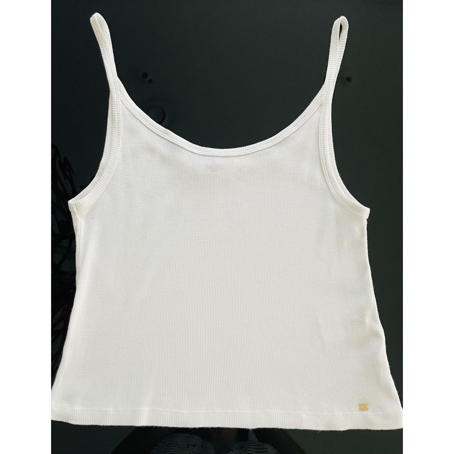 KLASYCZNY TANK TOP MARKI CELINE NA CIUNIUTKICH RAMIĄCZKACH Z PRĄŻKOWANEJ BAWEŁNY W KOLORZE BIAŁYM, Z MAŁYM ZŁOTYM LOGO NA DOLE. ROZMIAR M. STAN BARDZO DOBRY. PROSZĘ O PRZEMYŚLANE ZAKUPY, PONIEWAŻ NIE PRZYJMUJĘ ZWROTÓW