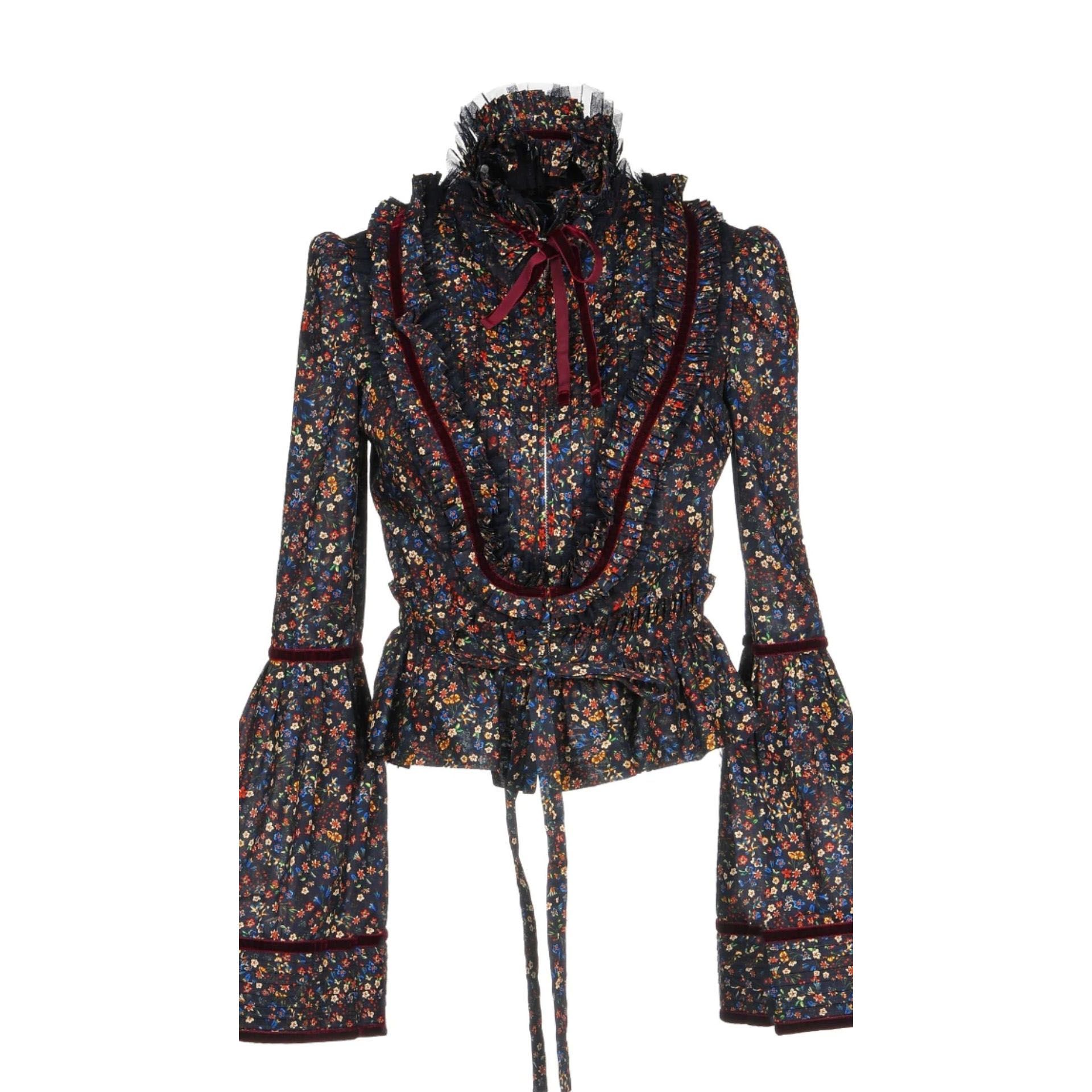 Mam do sprzedania śliczną bluzke firmy DSQUARED2. Bluzka ma rozmiar 32 (włoski rozmiar 38)Ja noszę rozmiar 34 i także mi pasuje.Bluzka jest nowa z metką zakupiona we Włoszech.Z przodu zasuwana na zamek i wiązana w pasie,ma śliczne kloszowane rękawy z dodatkami delikatnych kokardek z czerwonego aksamitu.Ze stójką przy szyi i dodatkiem czarnej koronki.