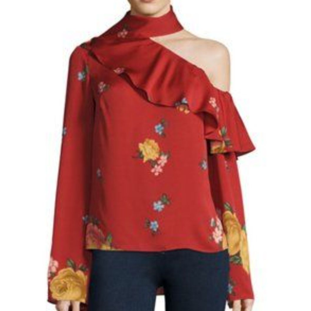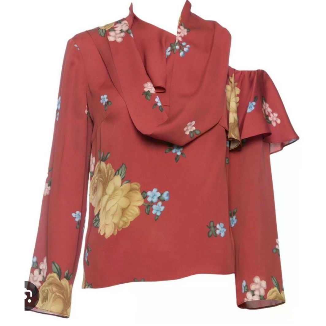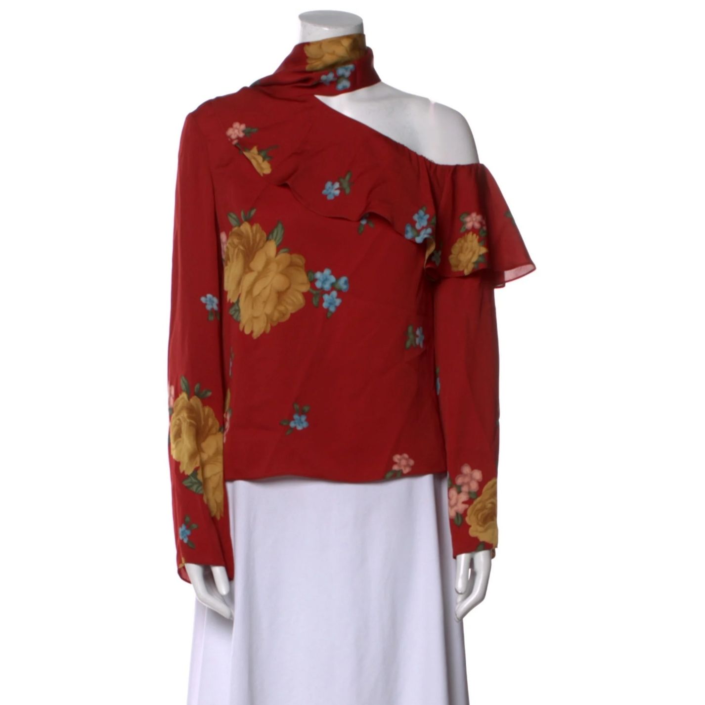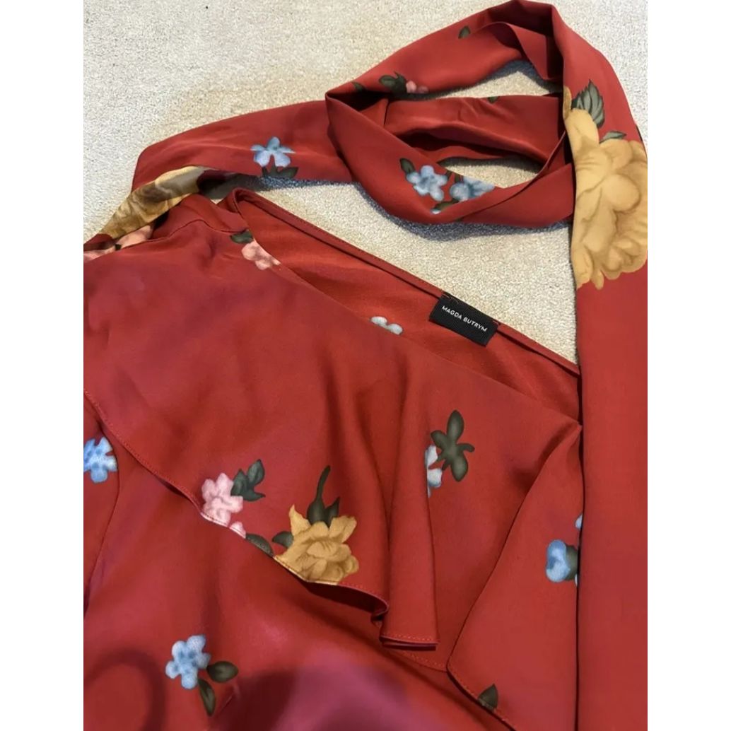 Magda Butrym, jedwabna bluzka na jedno ramię wykonana ze 100% jedwabiu. Szarfą którą można zawiązać wokół szyi. Klasyczna kolekcja projektantki.