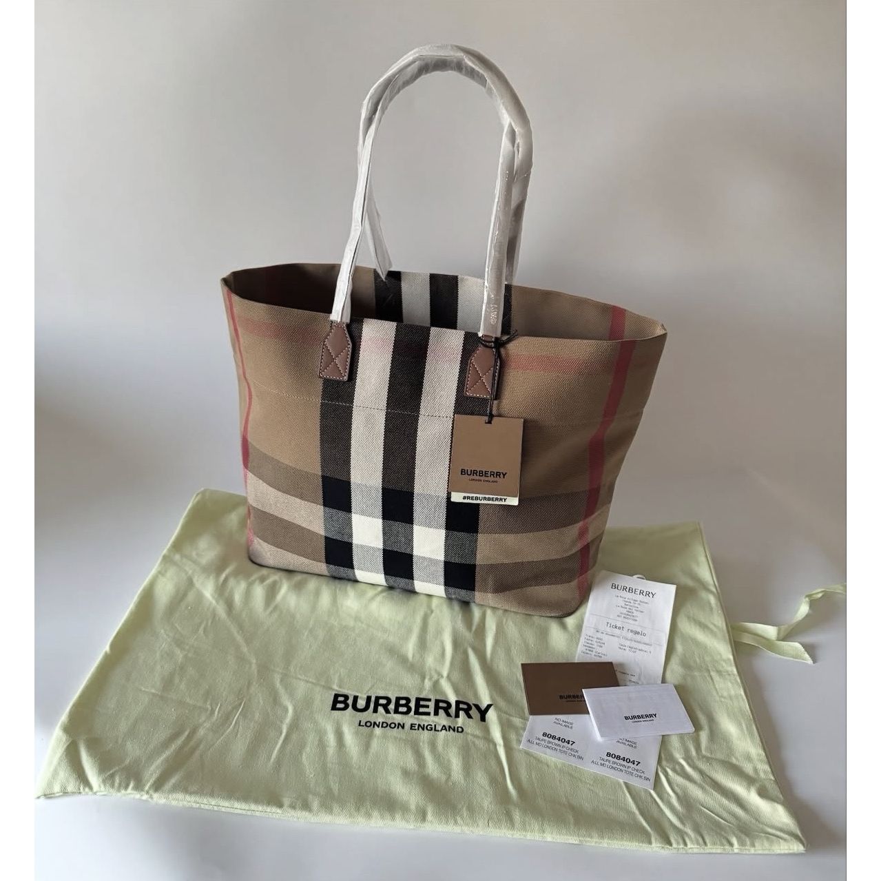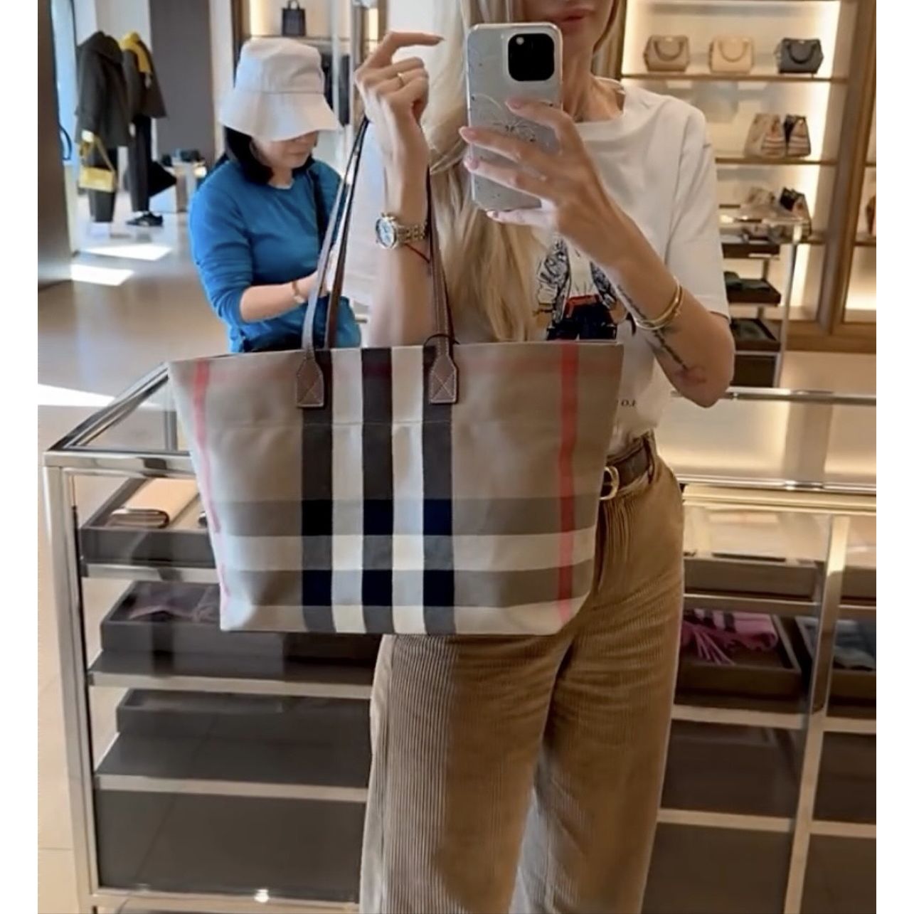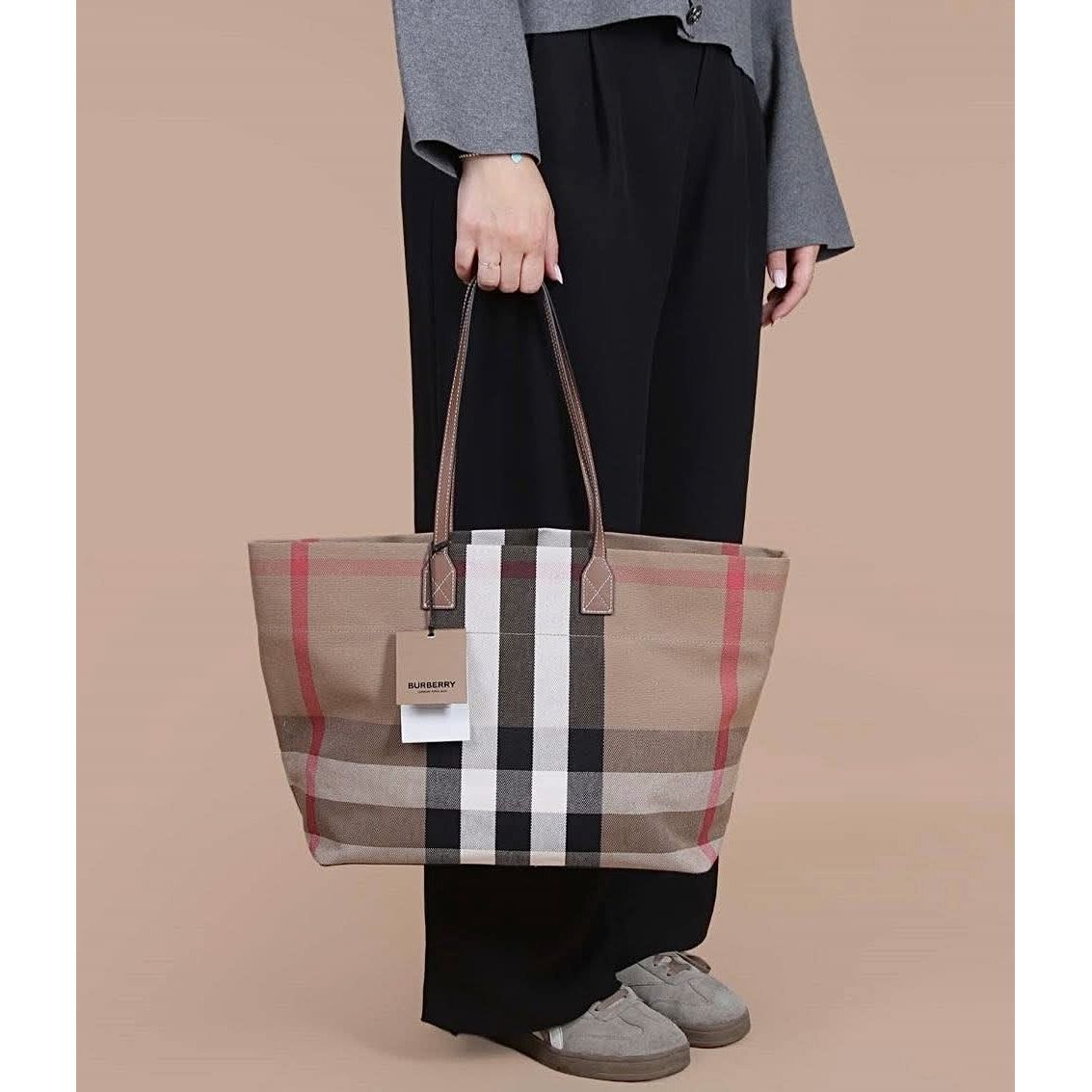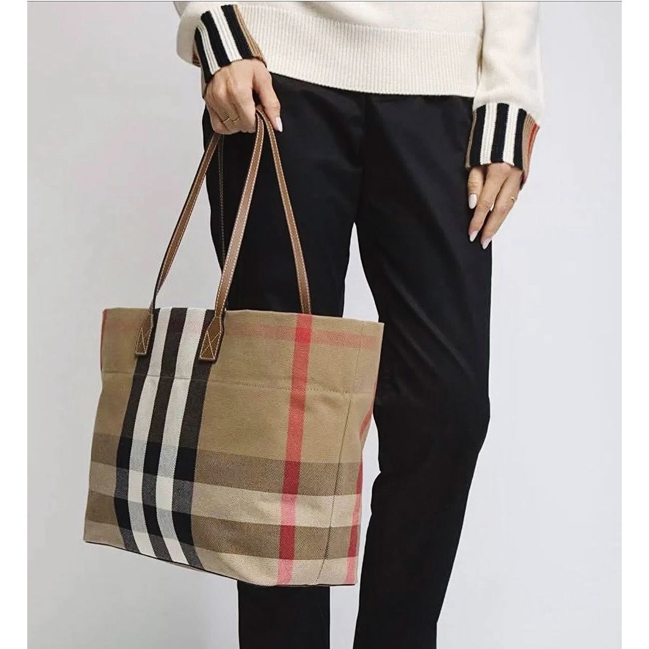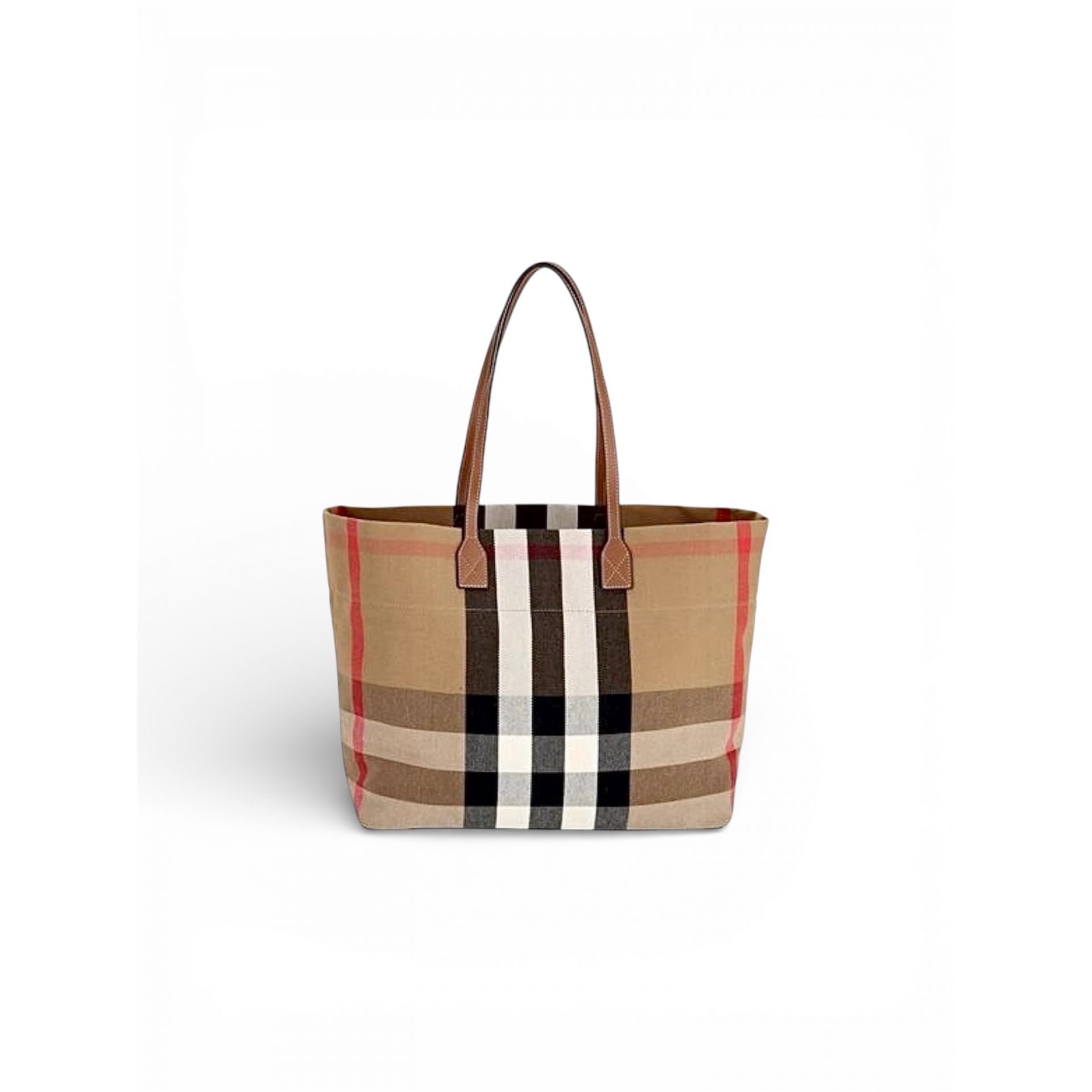 BURBERRY Check Canvas Medium London Shopping Tote - torebka shopperka