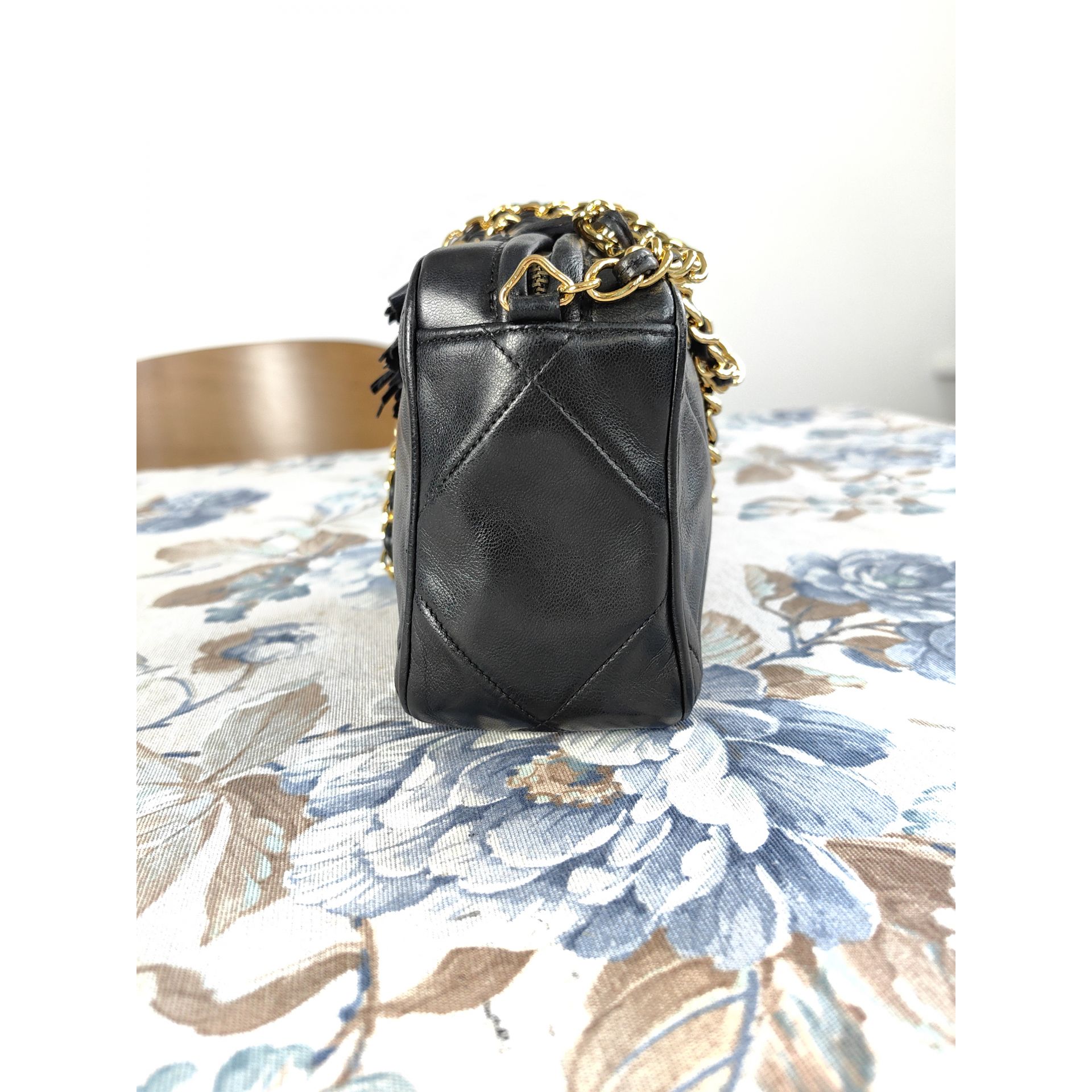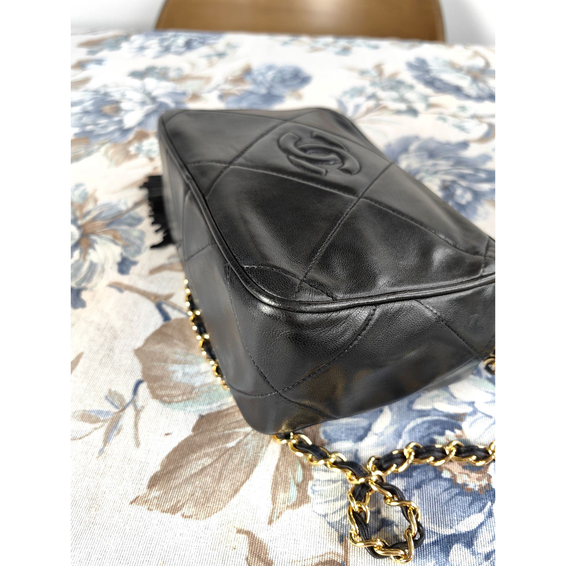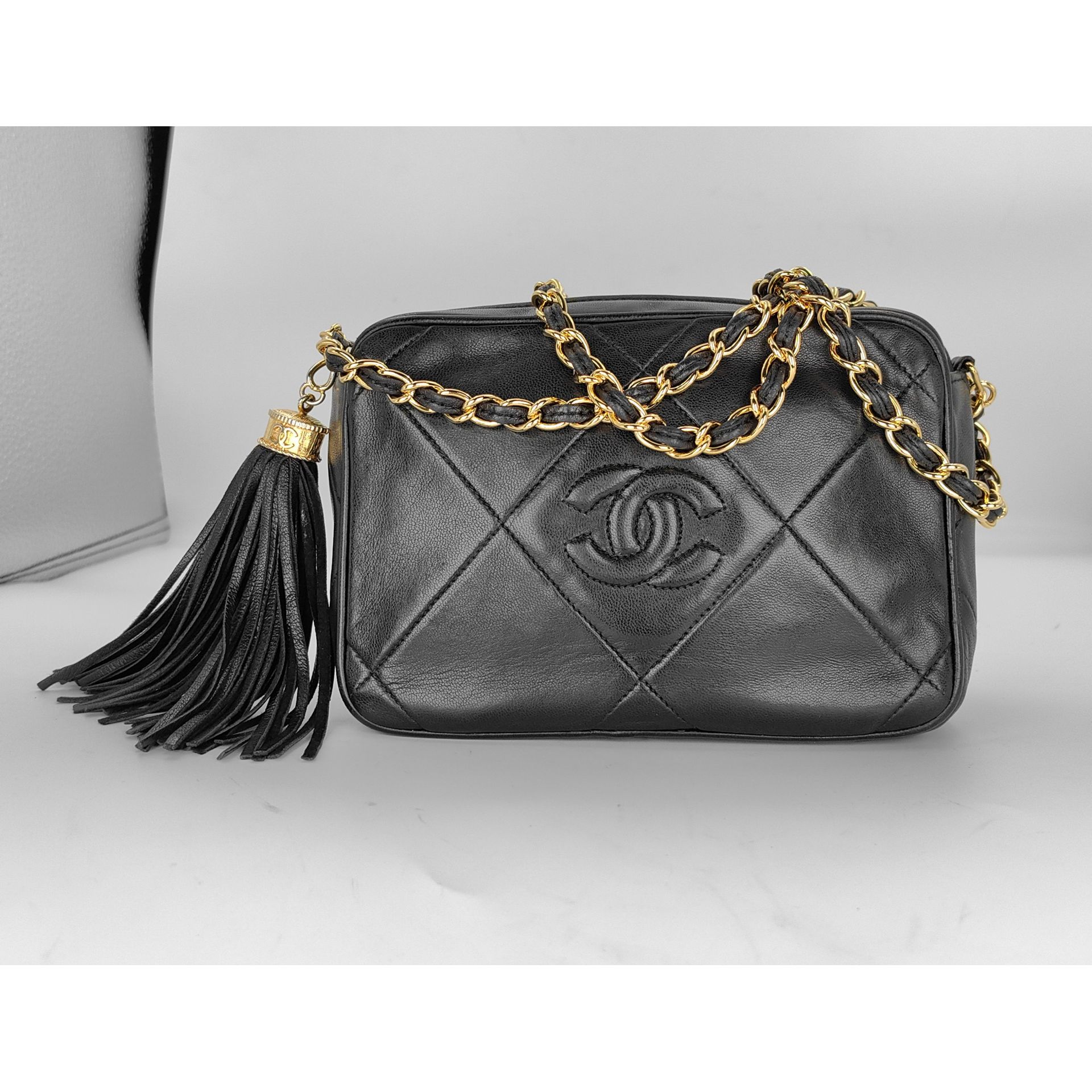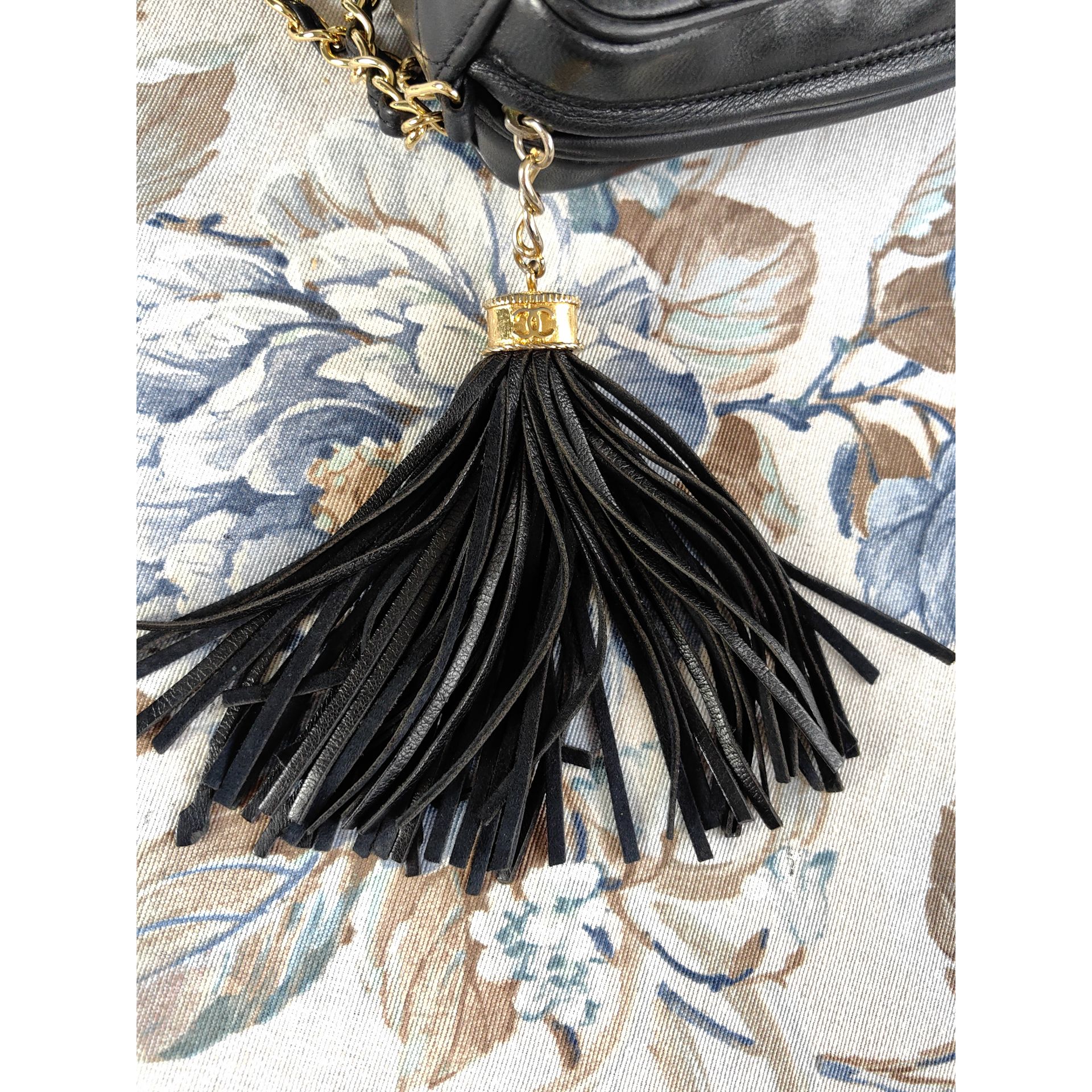 Autentyczna, piękna i ponadczasowa torebka CHANEL CC dimond crossbody z łańcuszkiem i ozdobnym chwostem, wykonana z czarnej pikowanej skóry. Złocona 24K złotem.