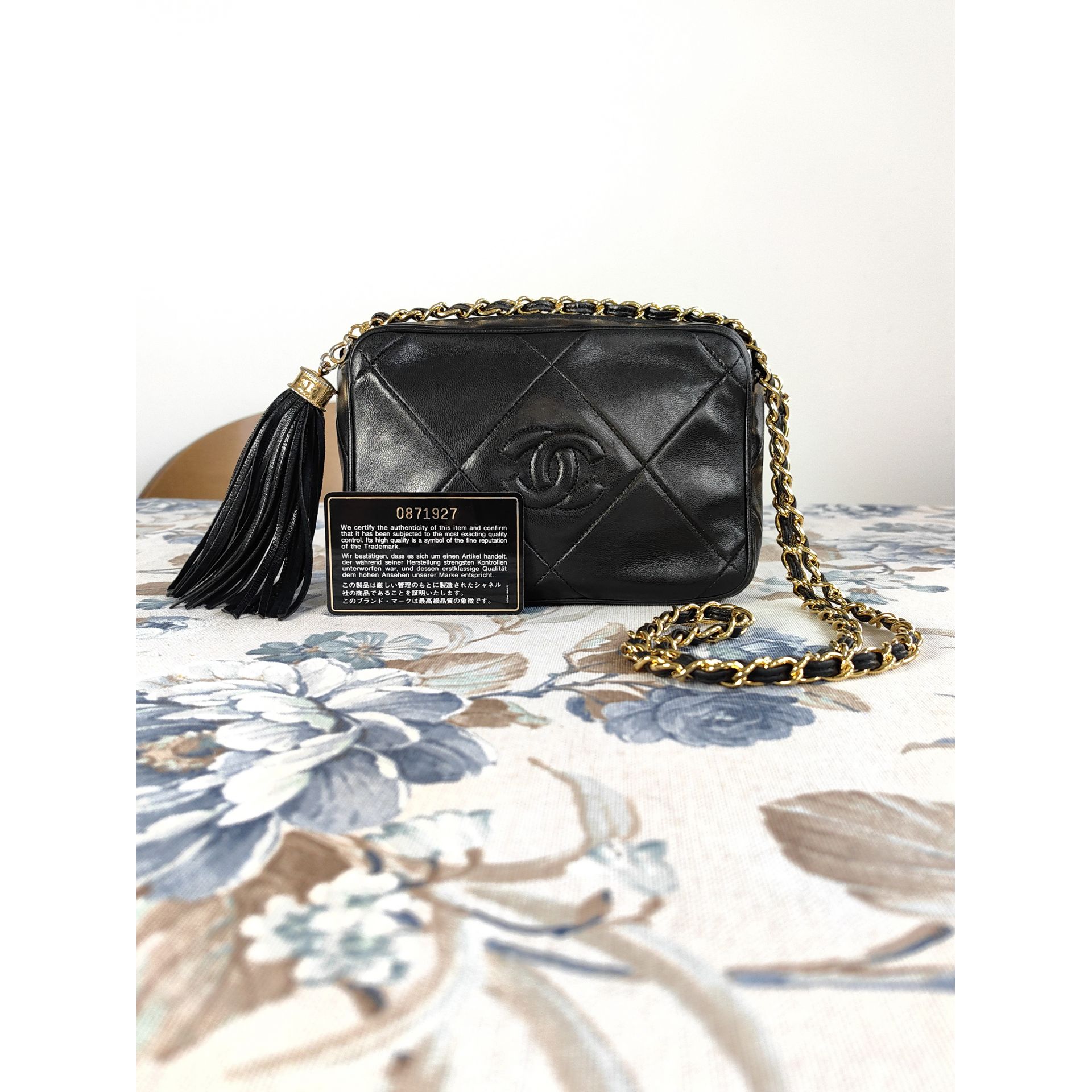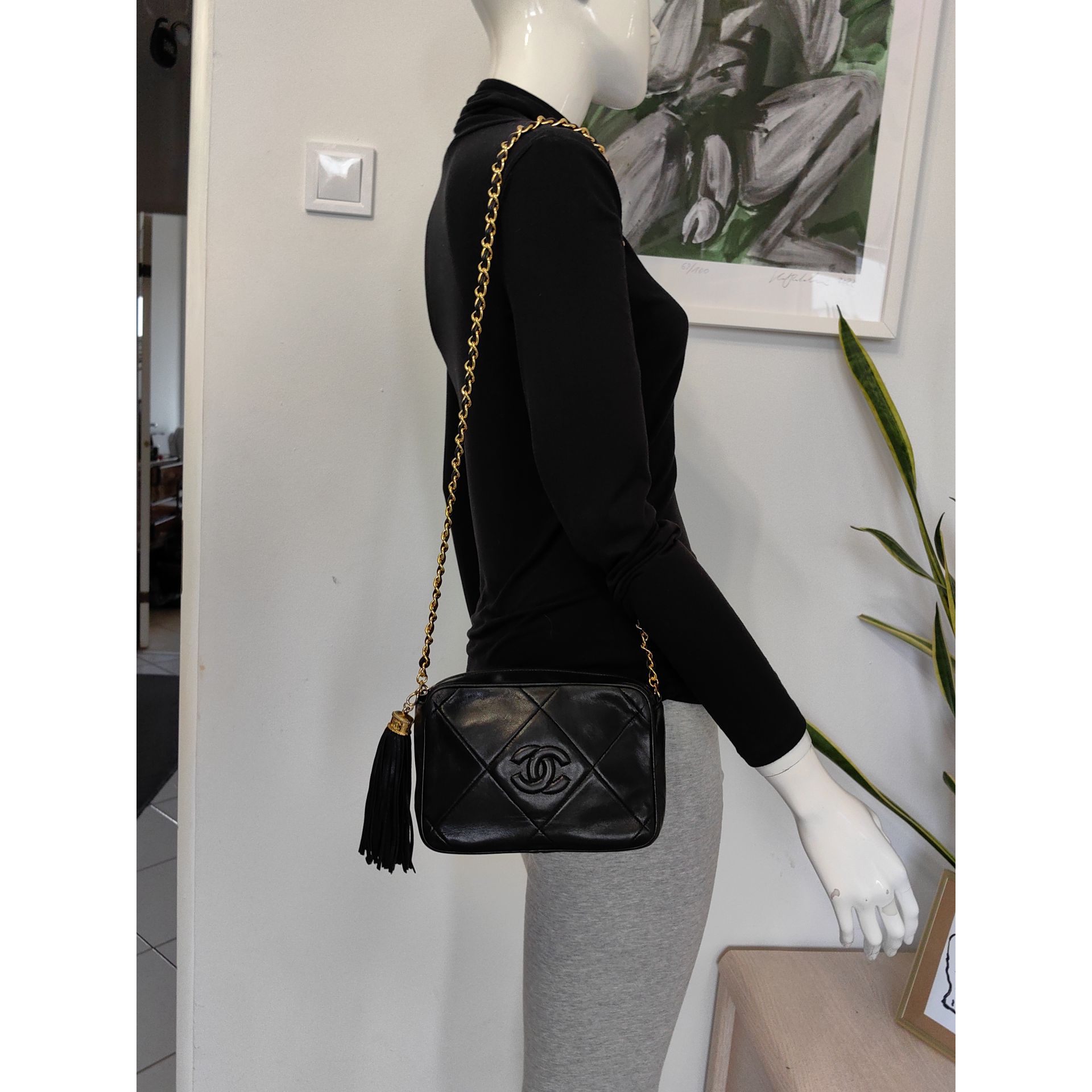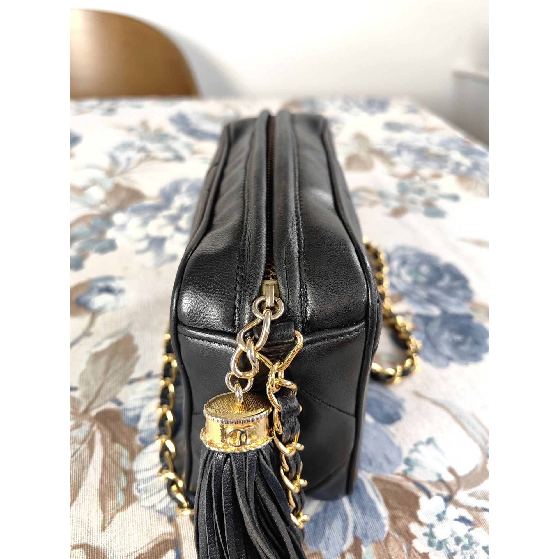 Autentyczna, piękna i ponadczasowa torebka CHANEL CC dimond crossbody z łańcuszkiem i ozdobnym chwostem, wykonana z czarnej pikowanej skóry. Złocona 24K złotem.