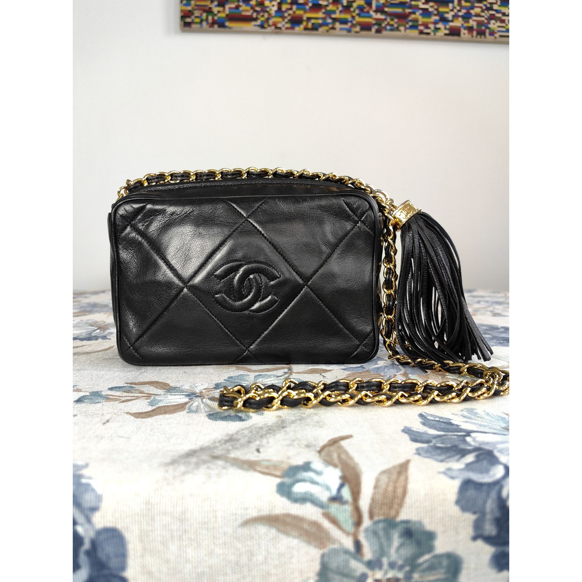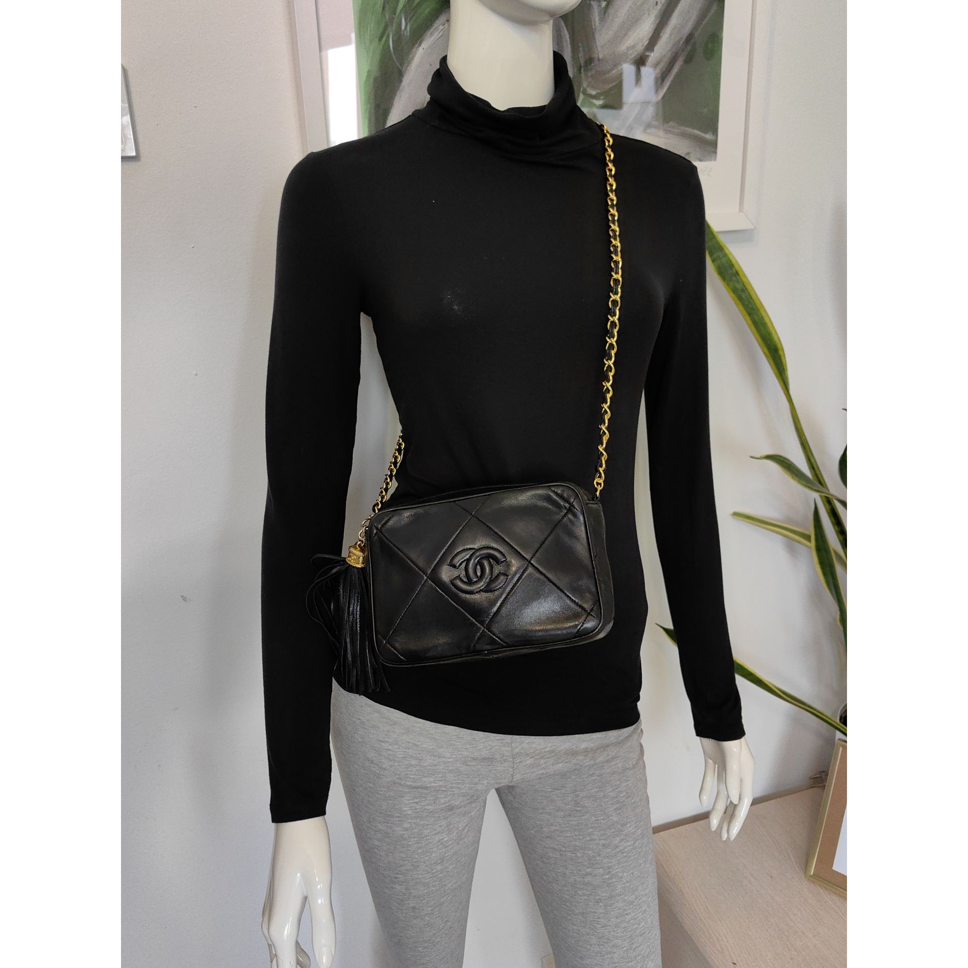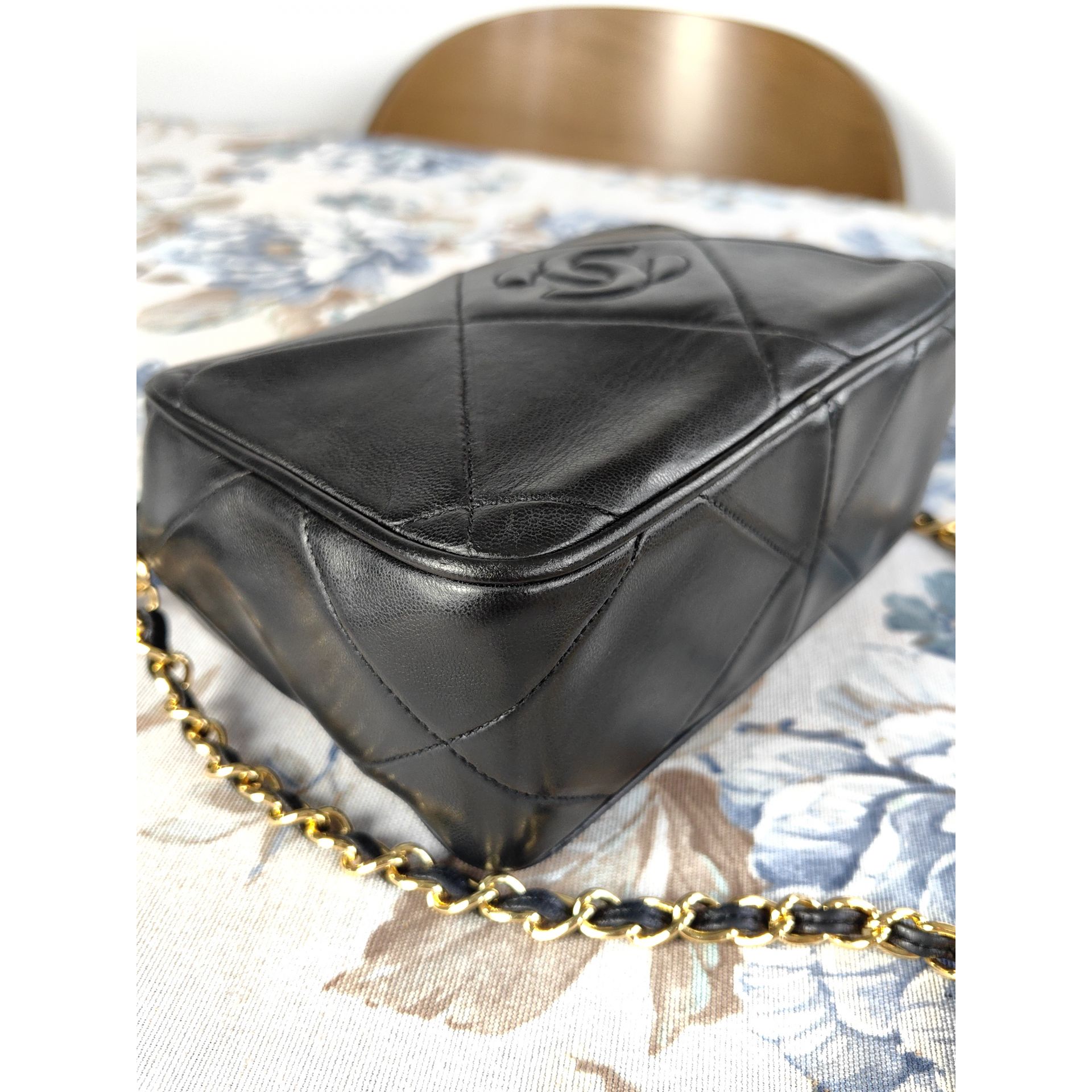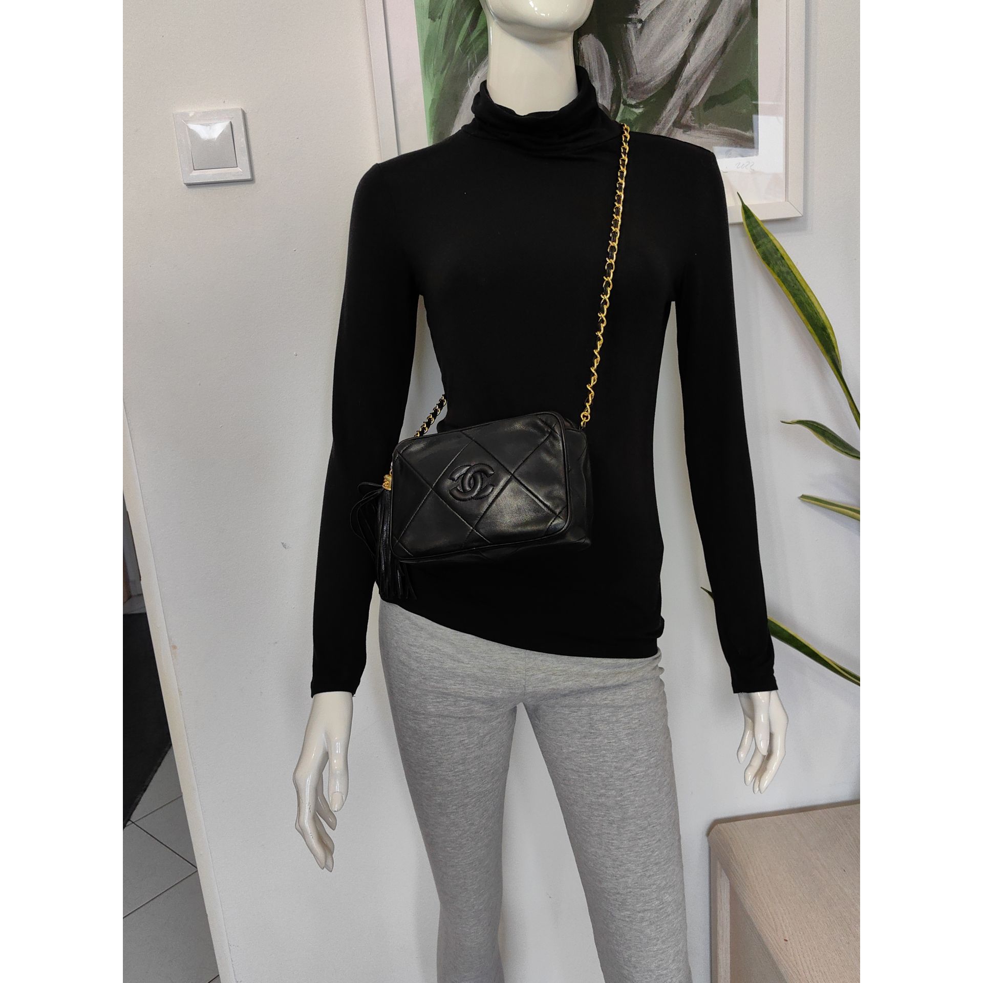Autentyczna, piękna i ponadczasowa torebka CHANEL CC dimond crossbody z łańcuszkiem i ozdobnym chwostem, wykonana z czarnej pikowanej skóry. Złocona 24K złotem.