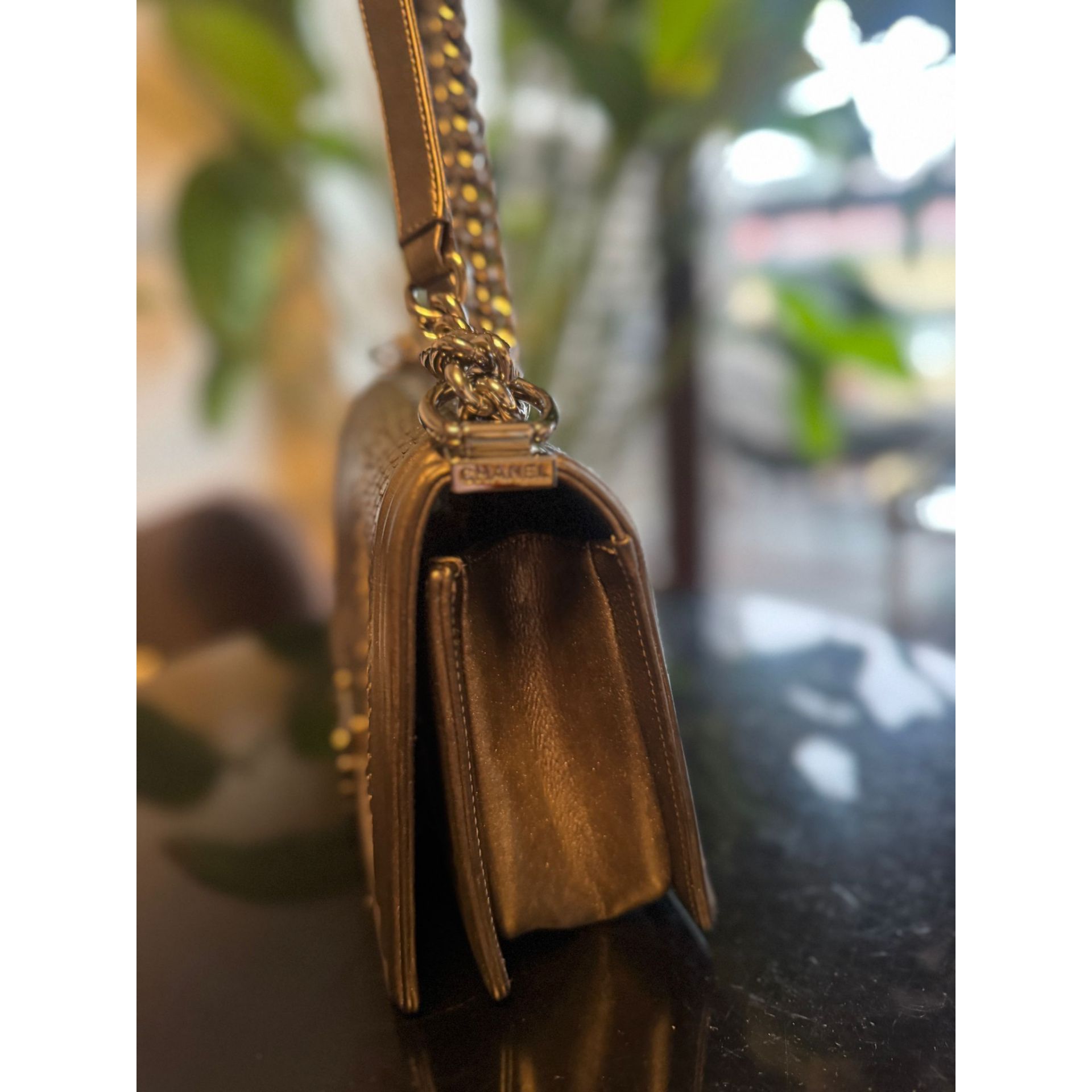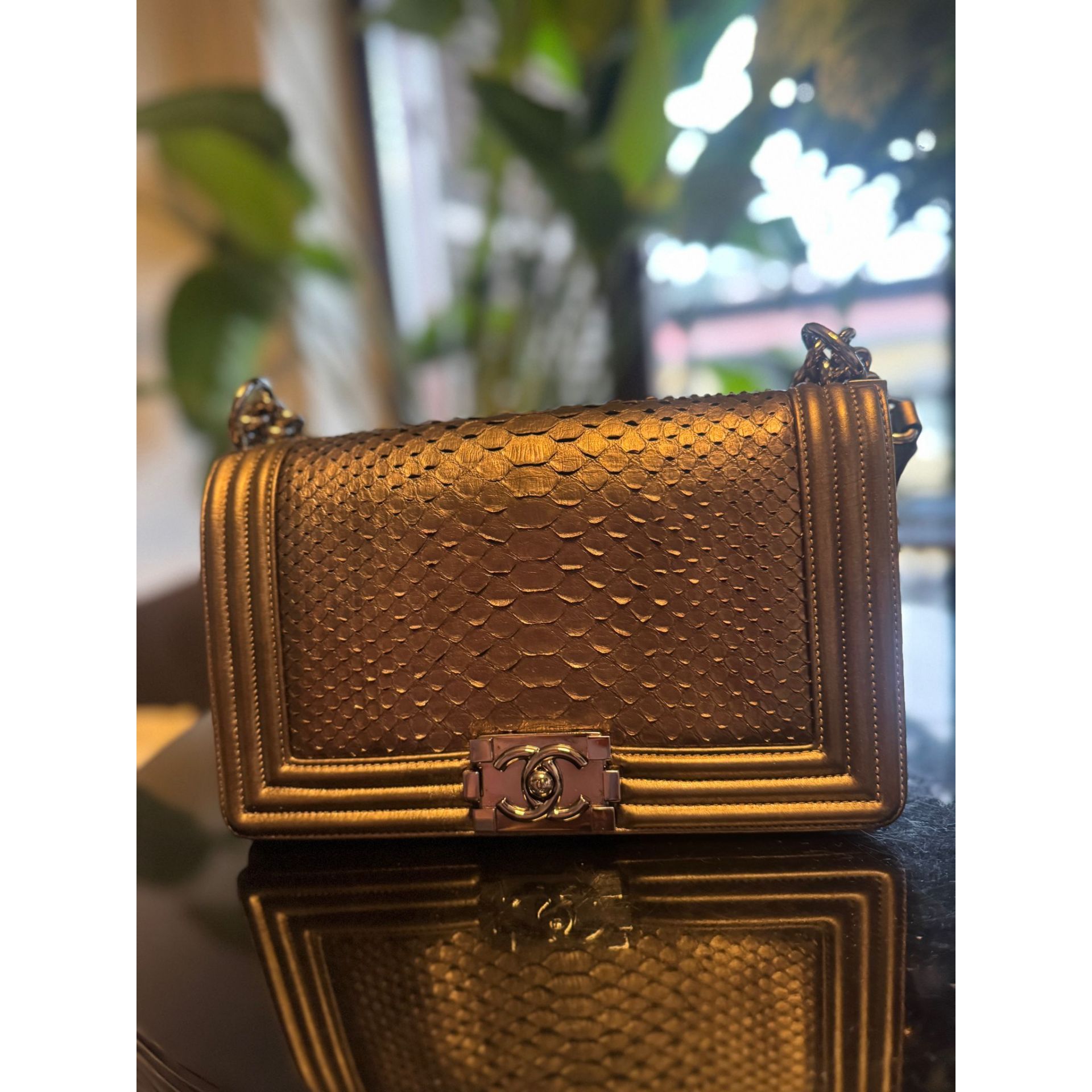 Chanel Boy Medium Flap Bag ze skóry pythona, charakterystyczne piękne łuski w mieniącym złoto- brązowym kolorze. Torebka cała mieni się na kolor metaliczny,w środku piękna metaliczna skóra.