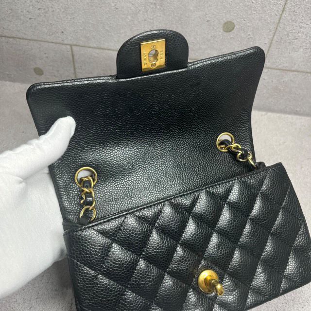Chanel Mini Rectangular Black Caviar Leather ze złotym okuciem. Seria 21 (2015-2016).