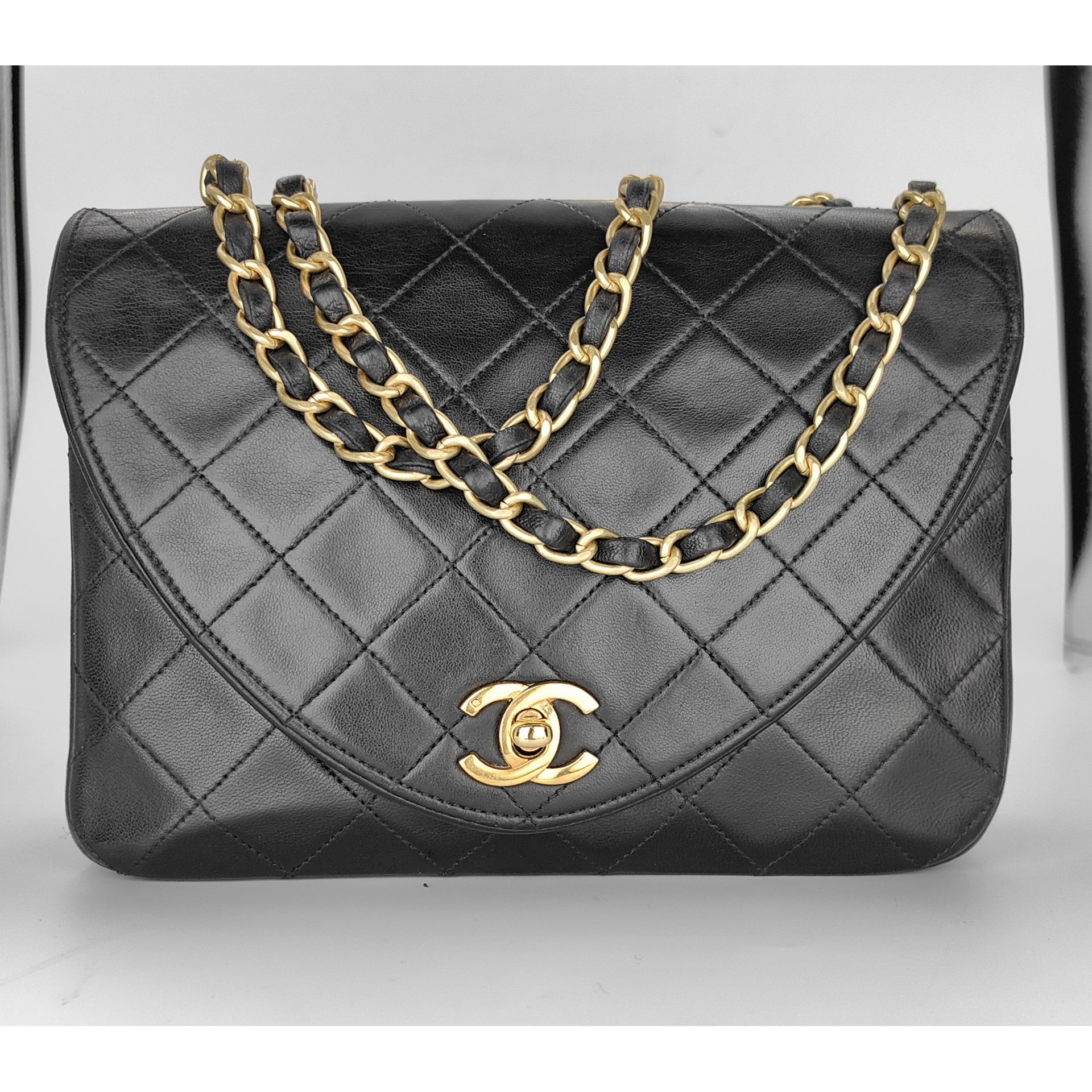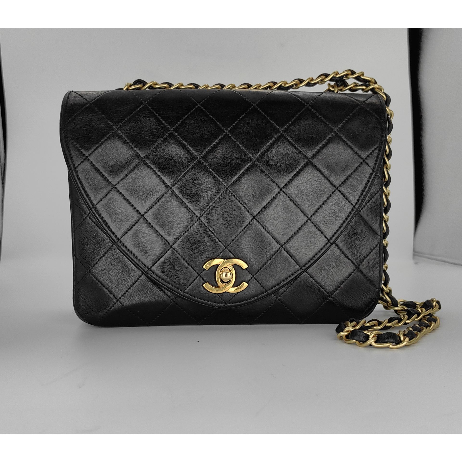 CHANEL Timeless Classic Envelope Flap Bag z czarnej pikowanej skóry z okuciami platerowanymi 24-karatowym złotem.