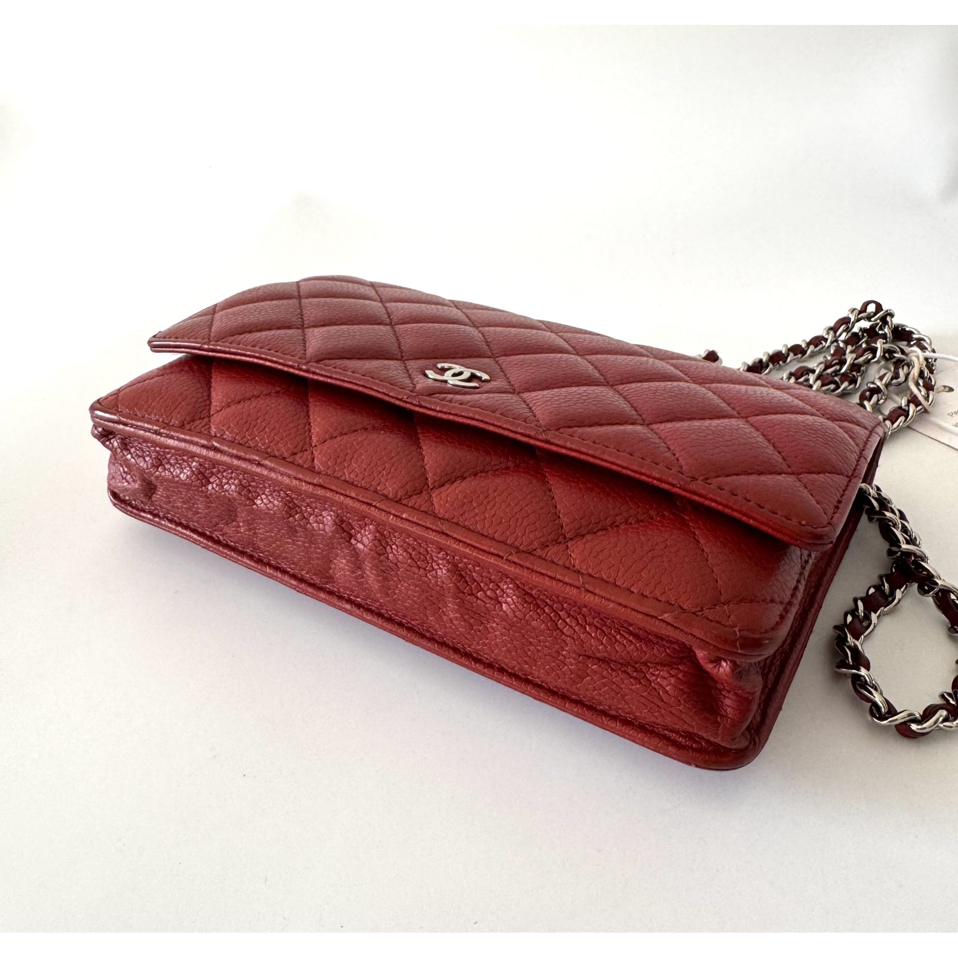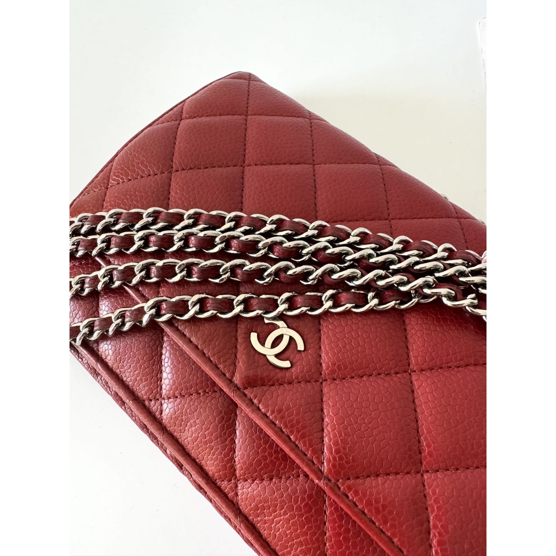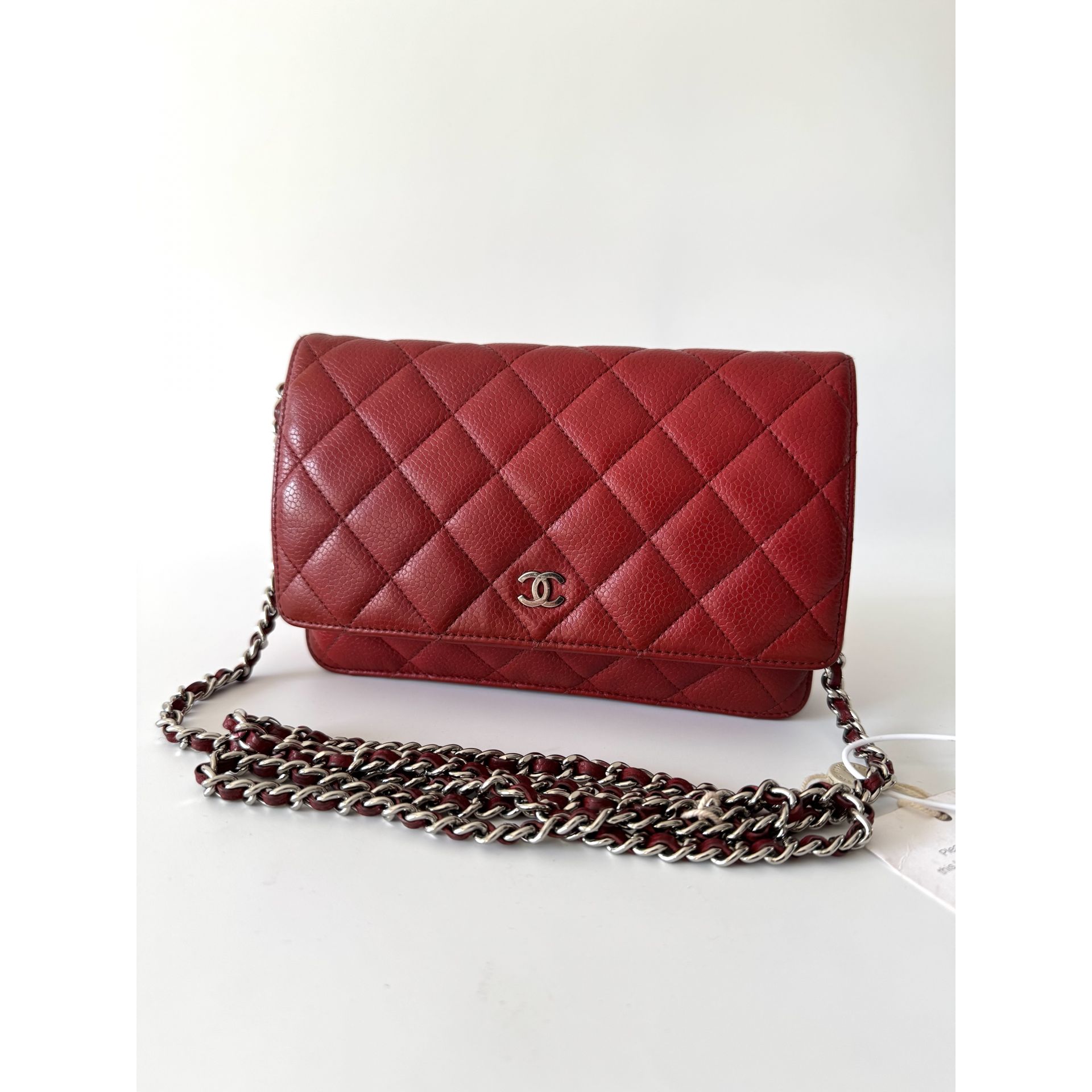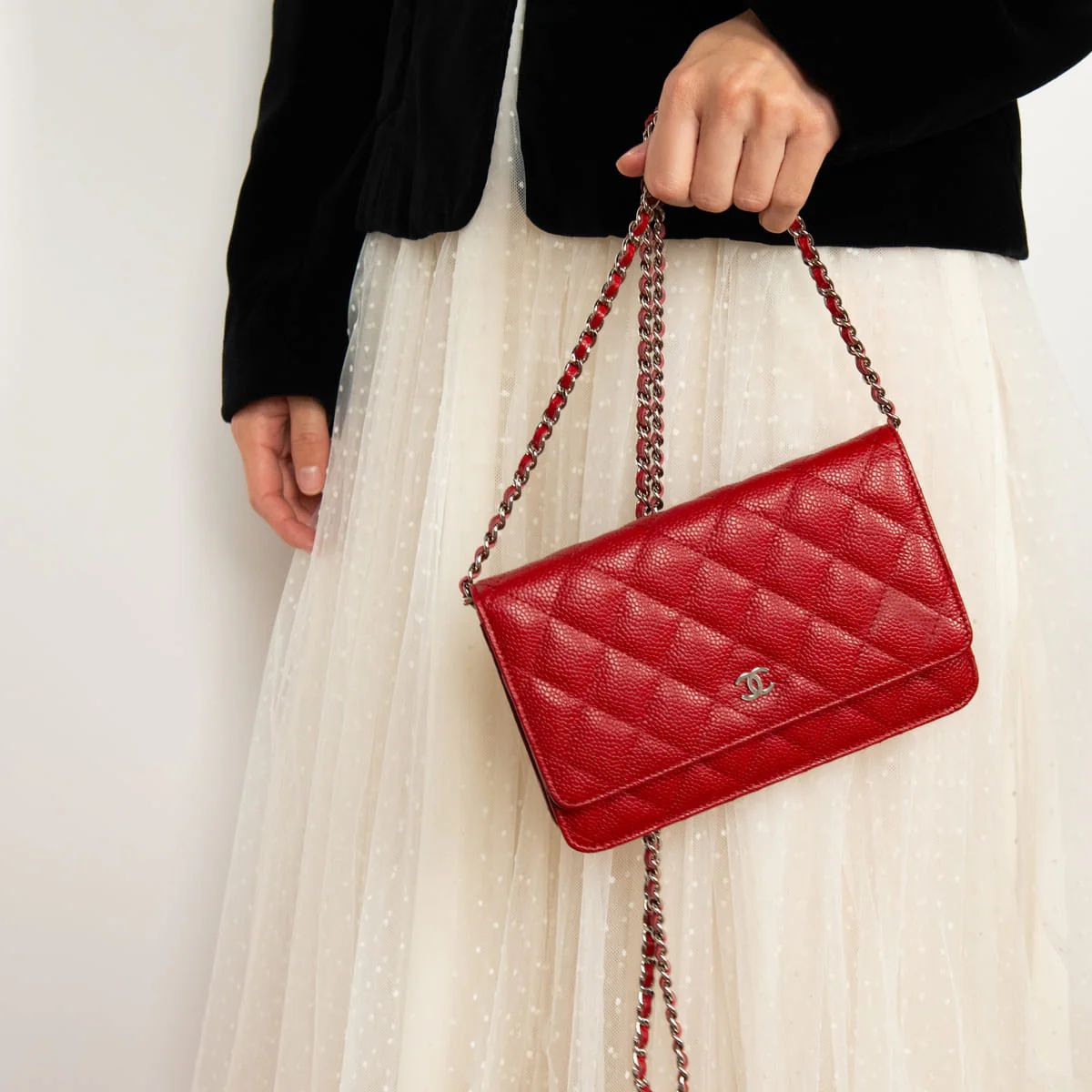 ▪️ Piękna torebka wykonana z najbardziej wytrzymałej skóry caviar w kolorze ciemnej czerwieni ze srebrnymi okuciami.