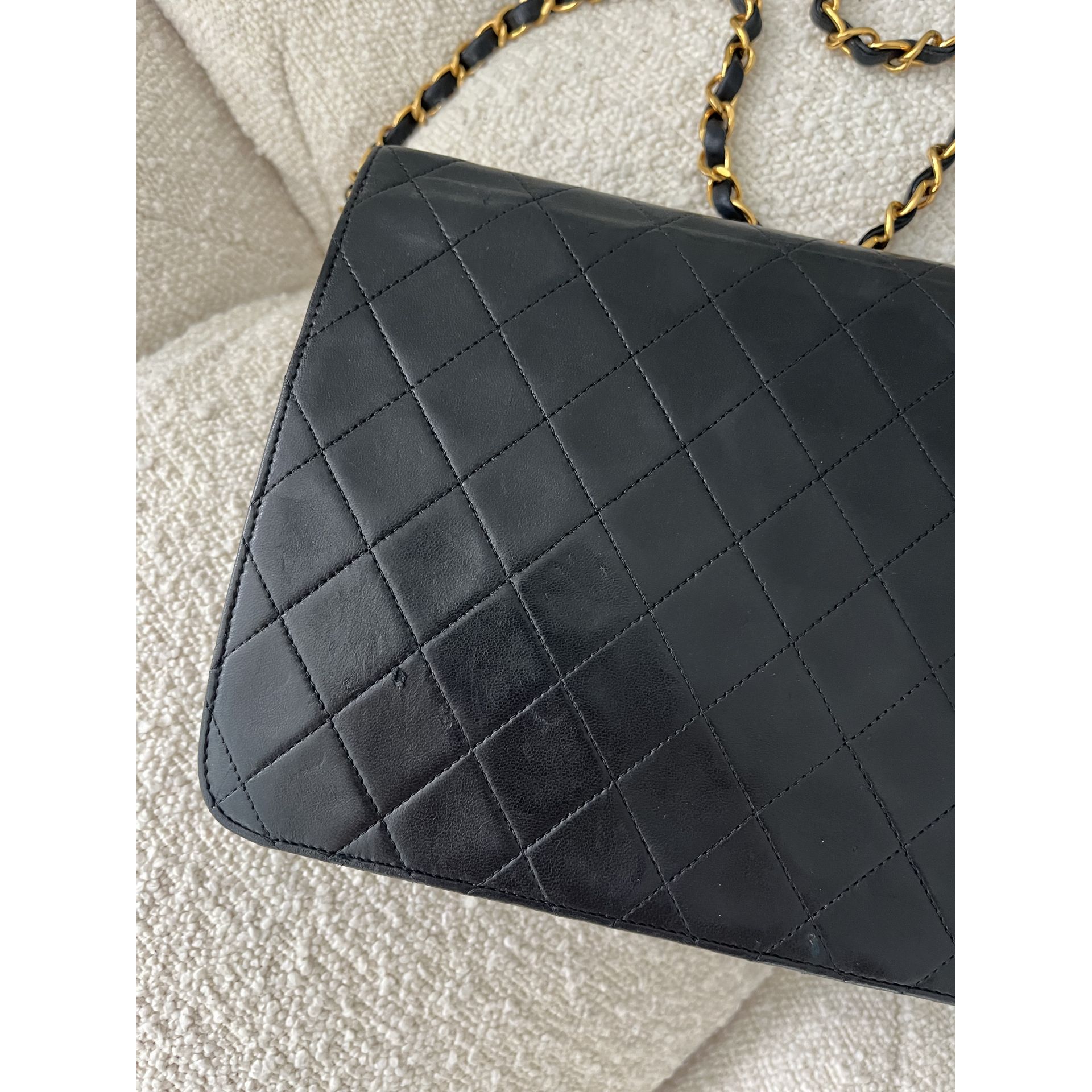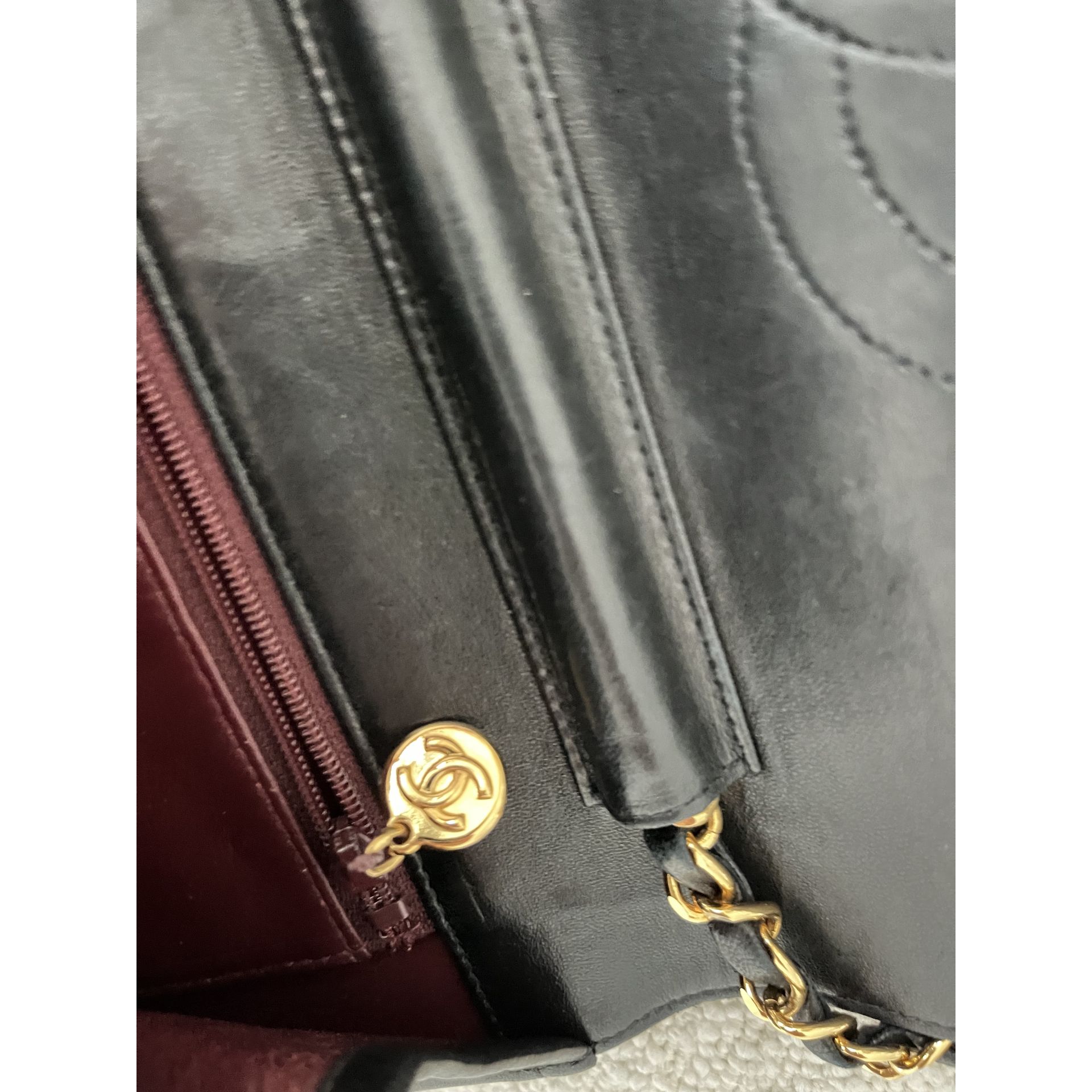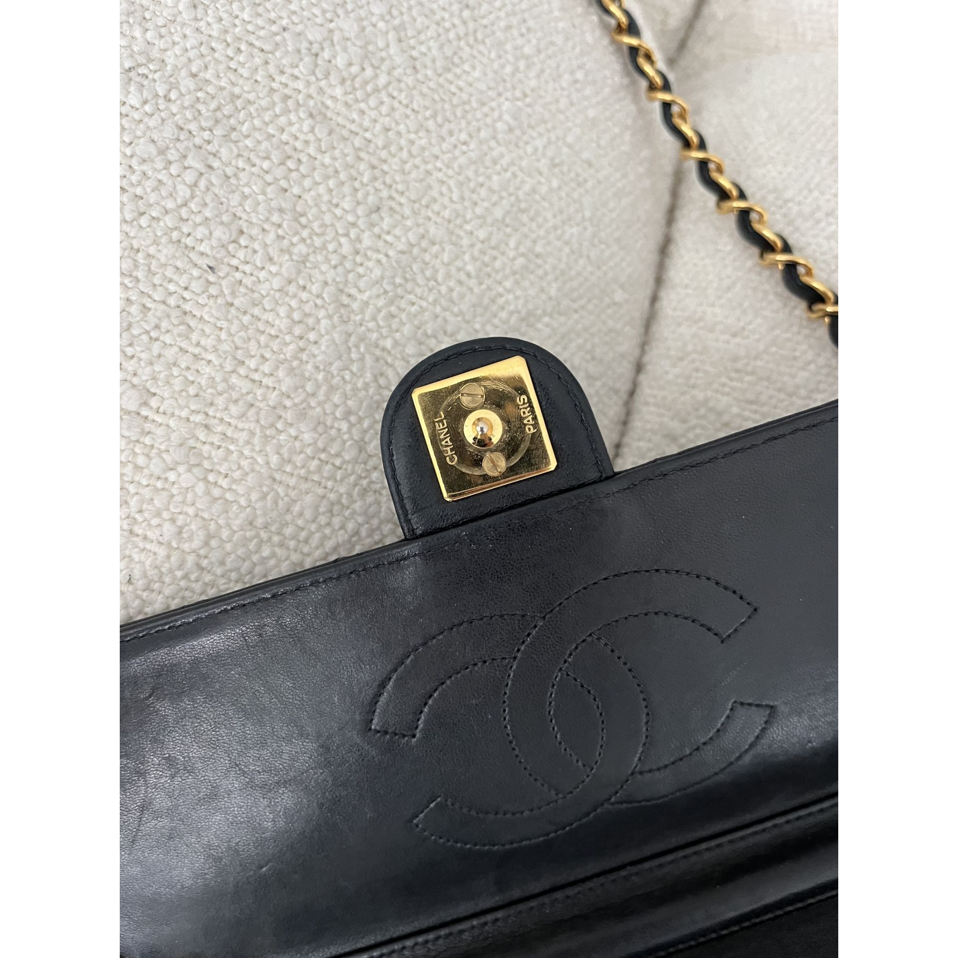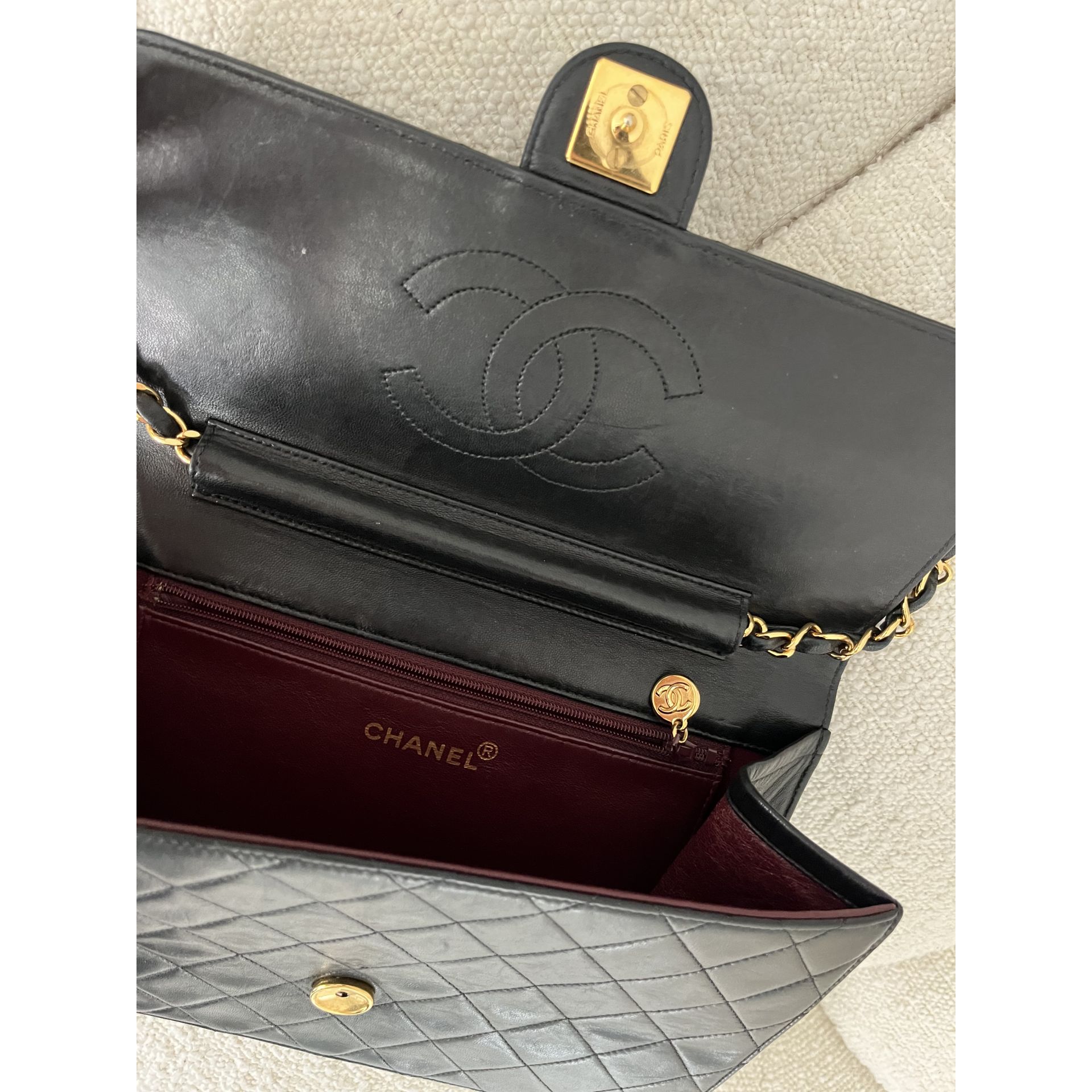 Piękna i klasyczna torebka marki Chanel - prawdziwa perełka, w pięknym stanie i cała w oryginale - nie była malowana ani na zewnątrz, ani w środku - kolor i skóra są autentyczne , ręcznie wykonane . To absolutnie unikatowe w przypadku takich modeli . Okucia pozłacane 24 karatowym złotem - co poświadcza próba na Logo . To niesamowity luksus torebek sprzed 2008 roku . Wszystkie późniejsze modele mają okucia w zwykłym metalu. Unikatowość torebki to także numer seryjny w środku i do tego karta autentyczności . Środek zachowany w super stanie . Na zewnątrz pajawiaja się ryski i w trzech miejscach zadrapania skóry - co pokazałam na zdjęciach . Logo z przodu lekko porysowane . Łańcuszek w stanie idealnym - kolor złota nie starty , skóra jak nowa w łańcuszku. Jedynym mankamentem jest ciężko chodzący mechanizm zapięcia - w środku część ruchoma czasami się przesuwa i trzeba ją wtedy końcówką zapięcia przesunąć, żeby włożyć bolec. To jedyna słaba strona torebki, ale w przypadku modeli o wartości zabytkowej często się to zdarza - wymaga to delikatności w obchodzeniu się z torebką . Wymiary podane na zdjęciu. I najważniejsze - torebka wolna jest od nieprzyjemnego zapachu vintage - co też jest unikatowe w przypadku modeli z dawnych lat . Polecam ♥️ Proszę o przemyślane zakupy, ponieważ nie przyjmuje zwrotów.