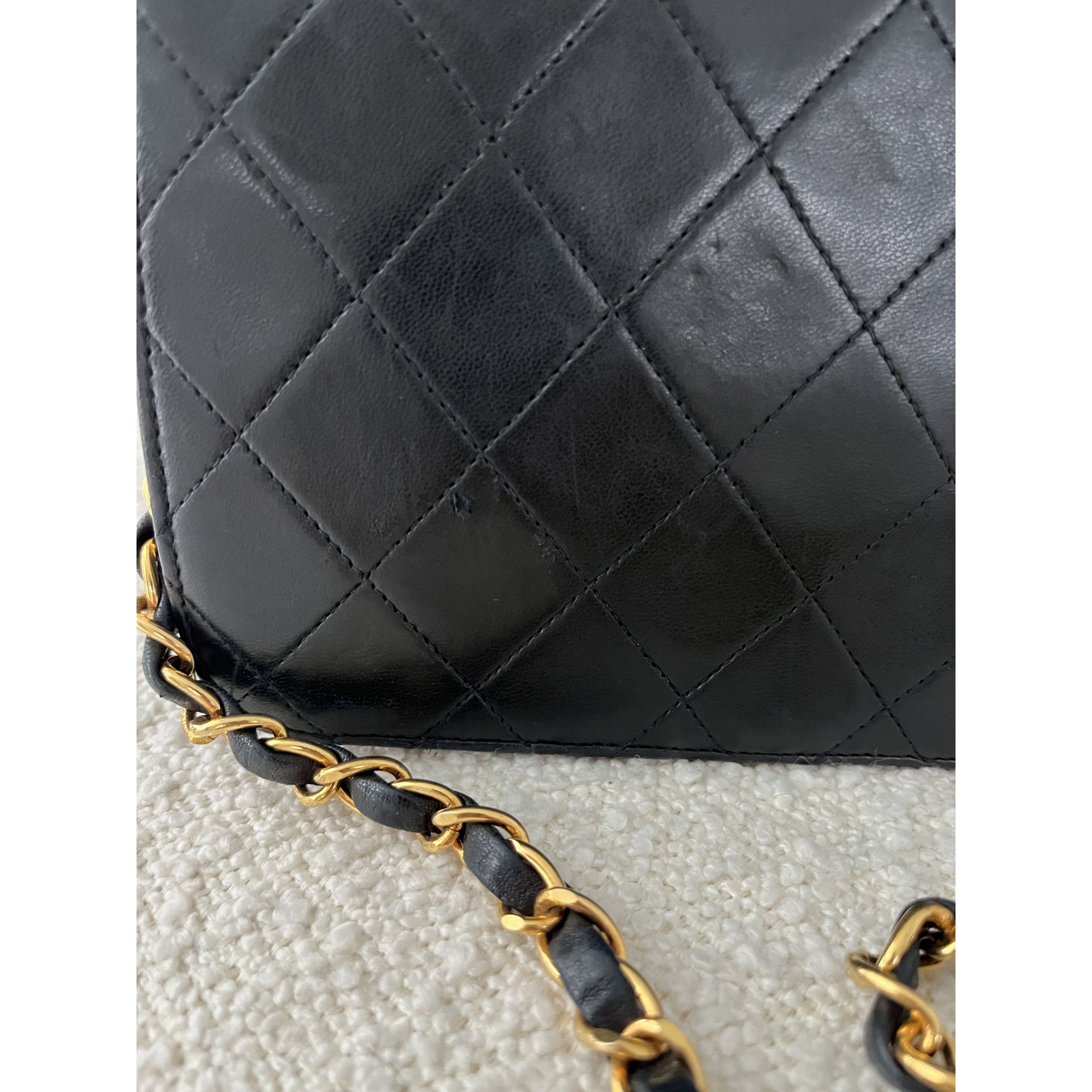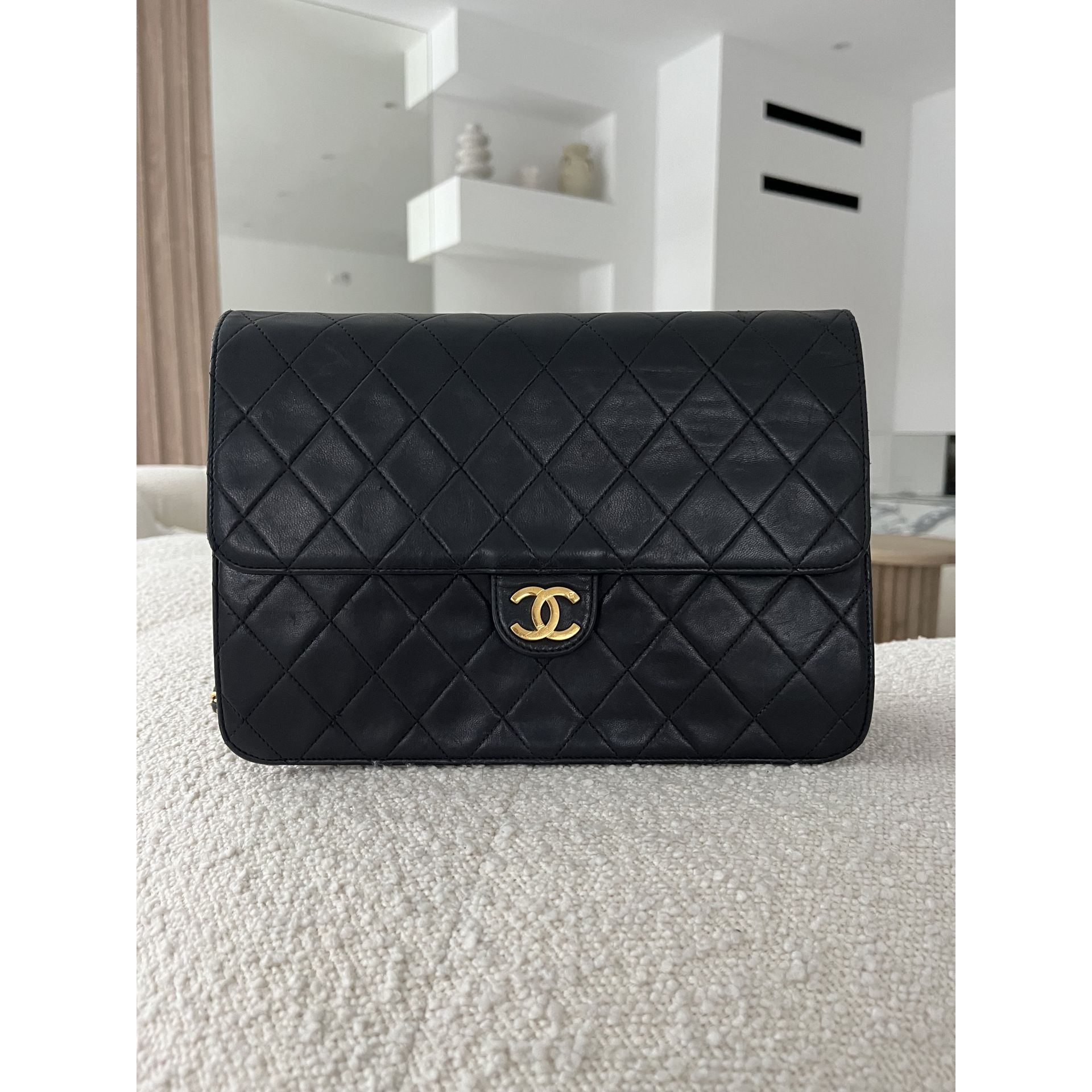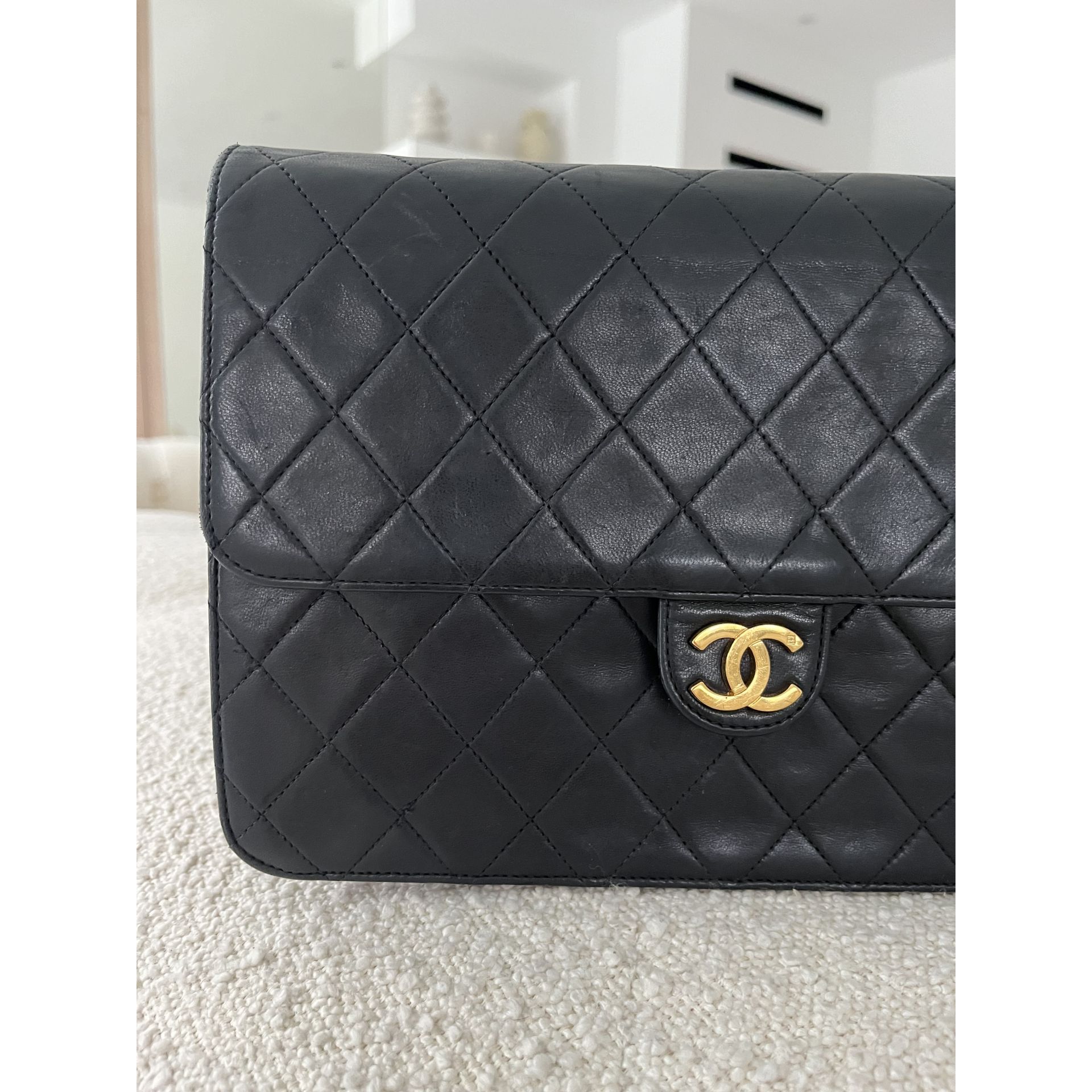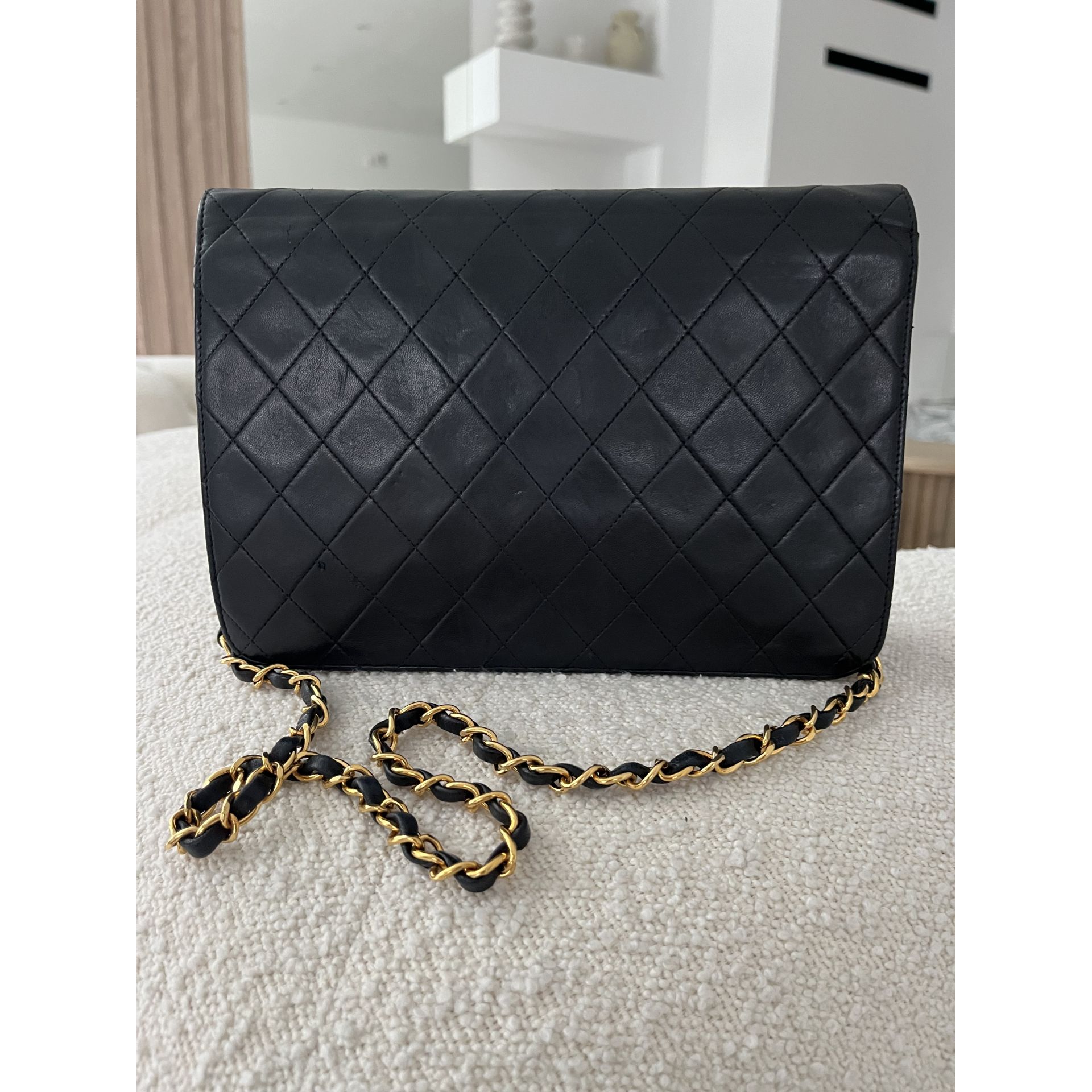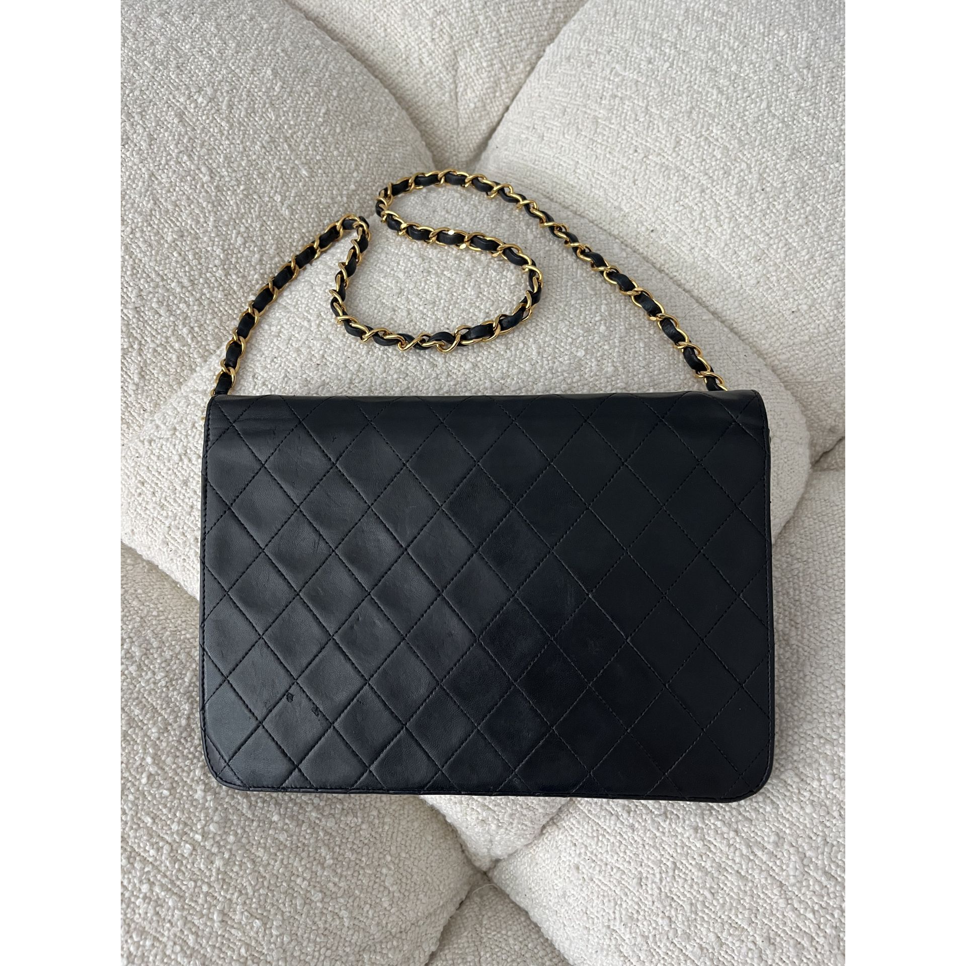 Piękna i klasyczna torebka marki Chanel - prawdziwa perełka, w pięknym stanie i cała w oryginale - nie była malowana ani na zewnątrz, ani w środku - kolor i skóra są autentyczne , ręcznie wykonane . To absolutnie unikatowe w przypadku takich modeli . Okucia pozłacane 24 karatowym złotem - co poświadcza próba na Logo . To niesamowity luksus torebek sprzed 2008 roku . Wszystkie późniejsze modele mają okucia w zwykłym metalu. Unikatowość torebki to także numer seryjny w środku i do tego karta autentyczności . Środek zachowany w super stanie . Na zewnątrz pajawiaja się ryski i w trzech miejscach zadrapania skóry - co pokazałam na zdjęciach . Logo z przodu lekko porysowane . Łańcuszek w stanie idealnym - kolor złota nie starty , skóra jak nowa w łańcuszku. Jedynym mankamentem jest ciężko chodzący mechanizm zapięcia - w środku część ruchoma czasami się przesuwa i trzeba ją wtedy końcówką zapięcia przesunąć, żeby włożyć bolec. To jedyna słaba strona torebki, ale w przypadku modeli o wartości zabytkowej często się to zdarza - wymaga to delikatności w obchodzeniu się z torebką . Wymiary podane na zdjęciu. I najważniejsze - torebka wolna jest od nieprzyjemnego zapachu vintage - co też jest unikatowe w przypadku modeli z dawnych lat . Polecam ♥️ Proszę o przemyślane zakupy, ponieważ nie przyjmuje zwrotów.
