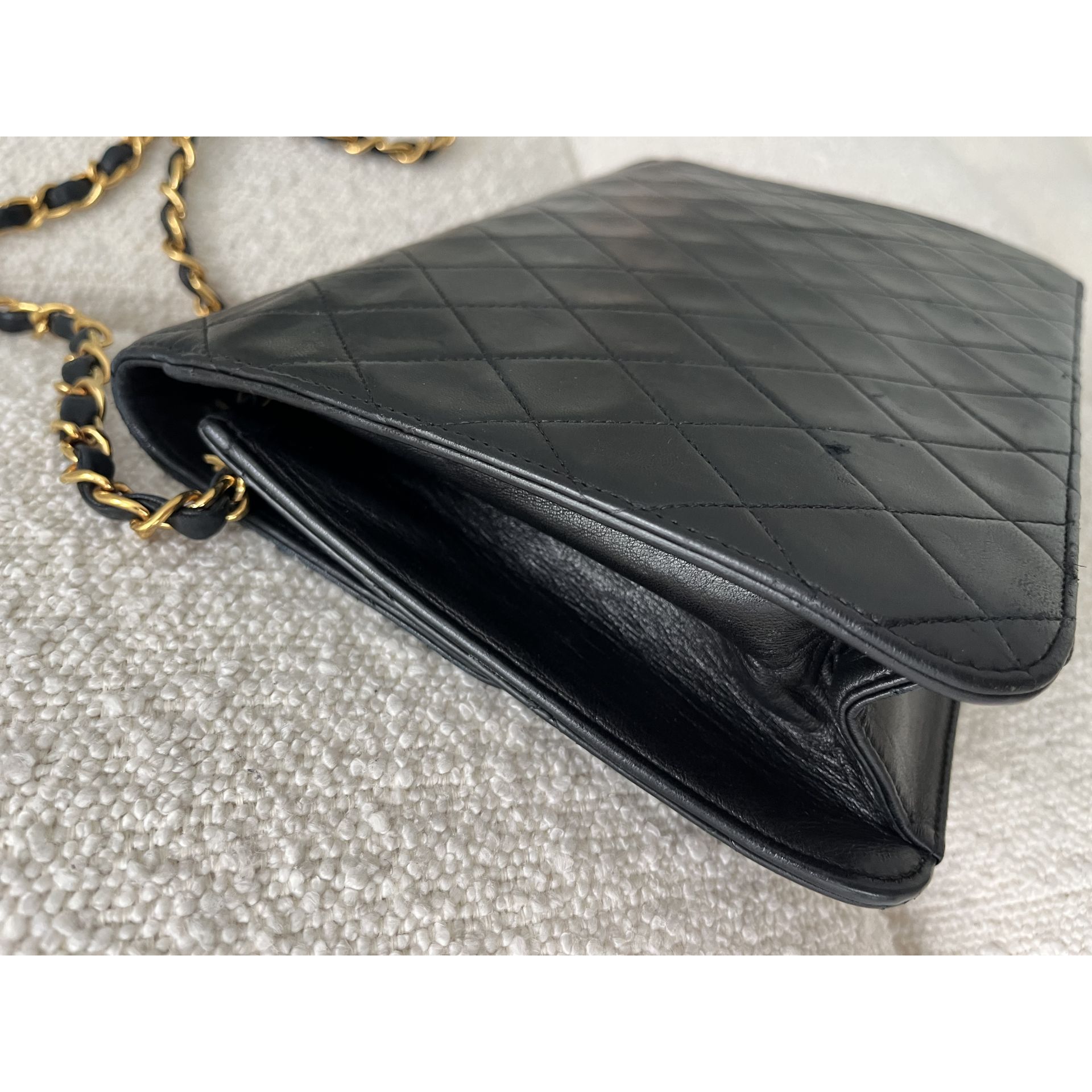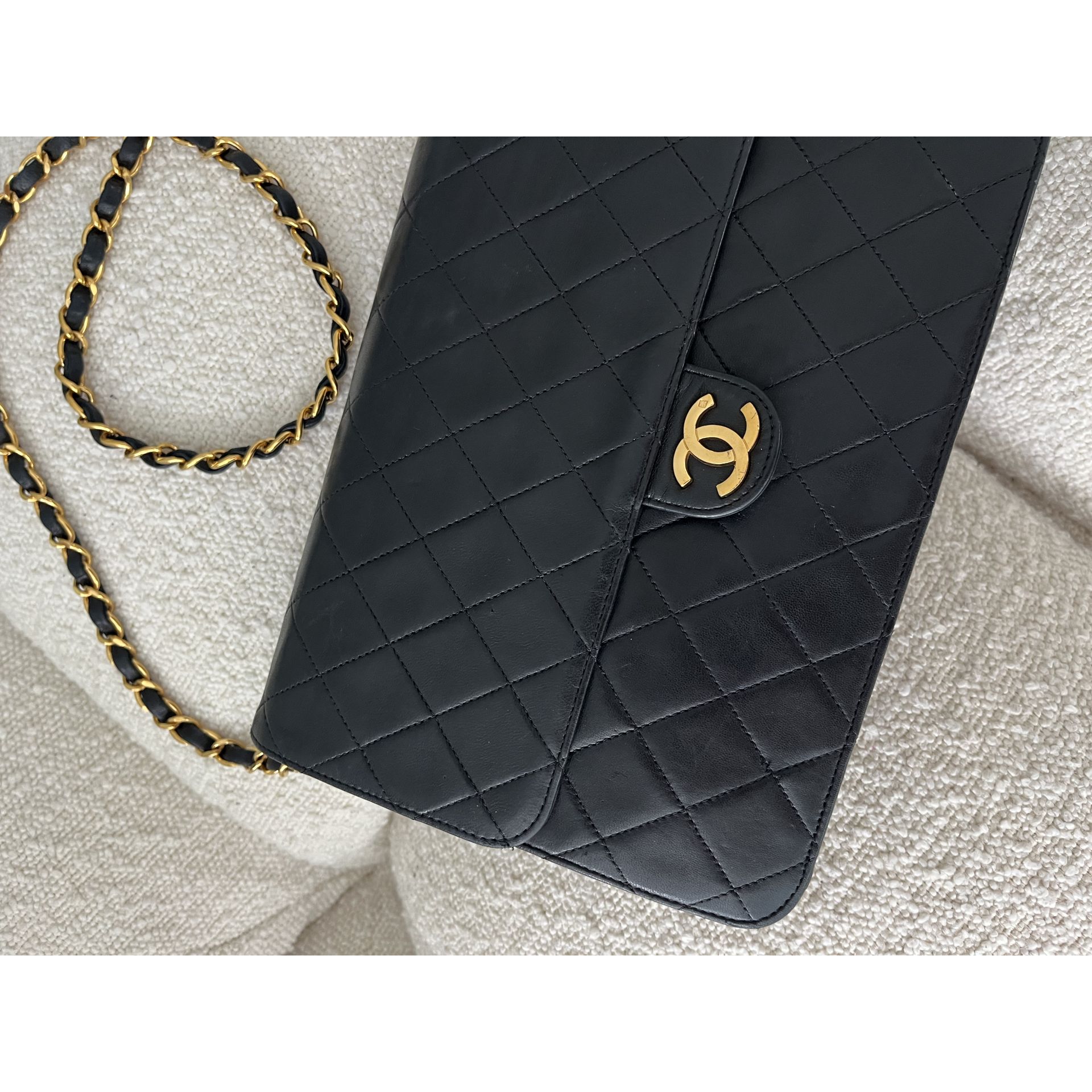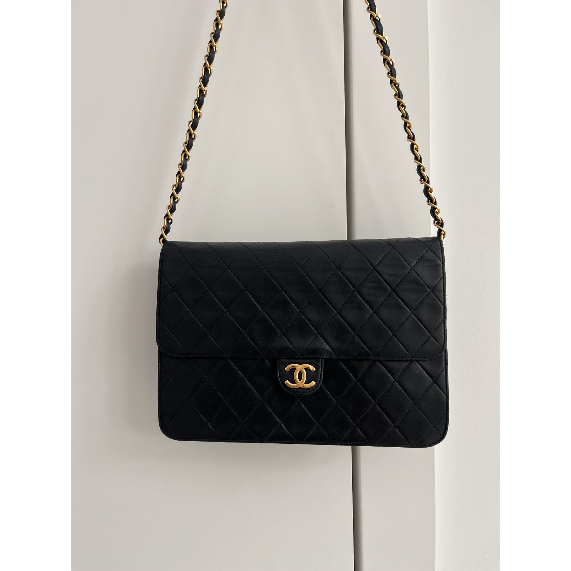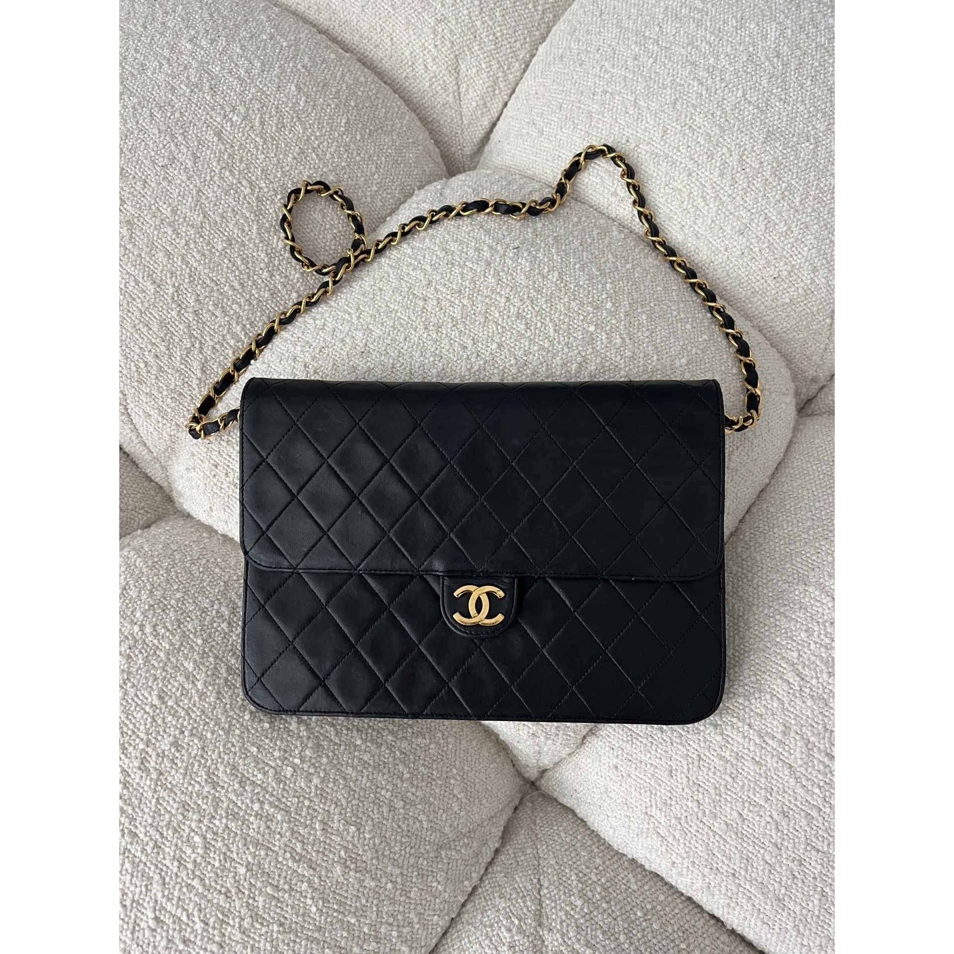 Piękna i klasyczna torebka marki Chanel - prawdziwa perełka, w pięknym stanie i cała w oryginale - nie była malowana ani na zewnątrz, ani w środku - kolor i skóra są autentyczne , ręcznie wykonane . To absolutnie unikatowe w przypadku takich modeli . Okucia pozłacane 24 karatowym złotem - co poświadcza próba na Logo . To niesamowity luksus torebek sprzed 2008 roku . Wszystkie późniejsze modele mają okucia w zwykłym metalu. Unikatowość torebki to także numer seryjny w środku i do tego karta autentyczności . Środek zachowany w super stanie . Na zewnątrz pajawiaja się ryski i w trzech miejscach zadrapania skóry - co pokazałam na zdjęciach . Logo z przodu lekko porysowane . Łańcuszek w stanie idealnym - kolor złota nie starty , skóra jak nowa w łańcuszku. Jedynym mankamentem jest ciężko chodzący mechanizm zapięcia - w środku część ruchoma czasami się przesuwa i trzeba ją wtedy końcówką zapięcia przesunąć, żeby włożyć bolec. To jedyna słaba strona torebki, ale w przypadku modeli o wartości zabytkowej często się to zdarza - wymaga to delikatności w obchodzeniu się z torebką . Wymiary podane na zdjęciu. I najważniejsze - torebka wolna jest od nieprzyjemnego zapachu vintage - co też jest unikatowe w przypadku modeli z dawnych lat . Polecam ♥️ Proszę o przemyślane zakupy, ponieważ nie przyjmuje zwrotów.