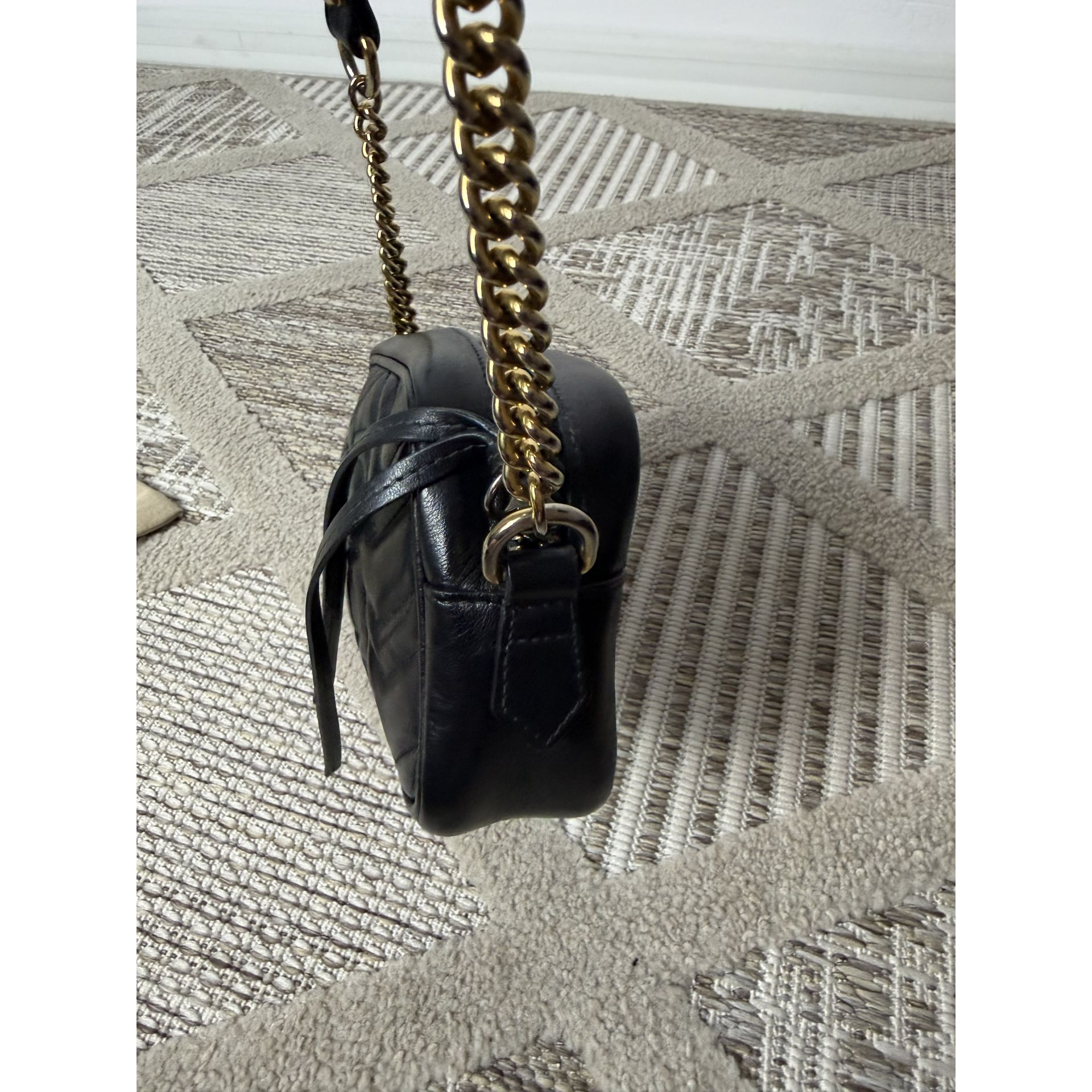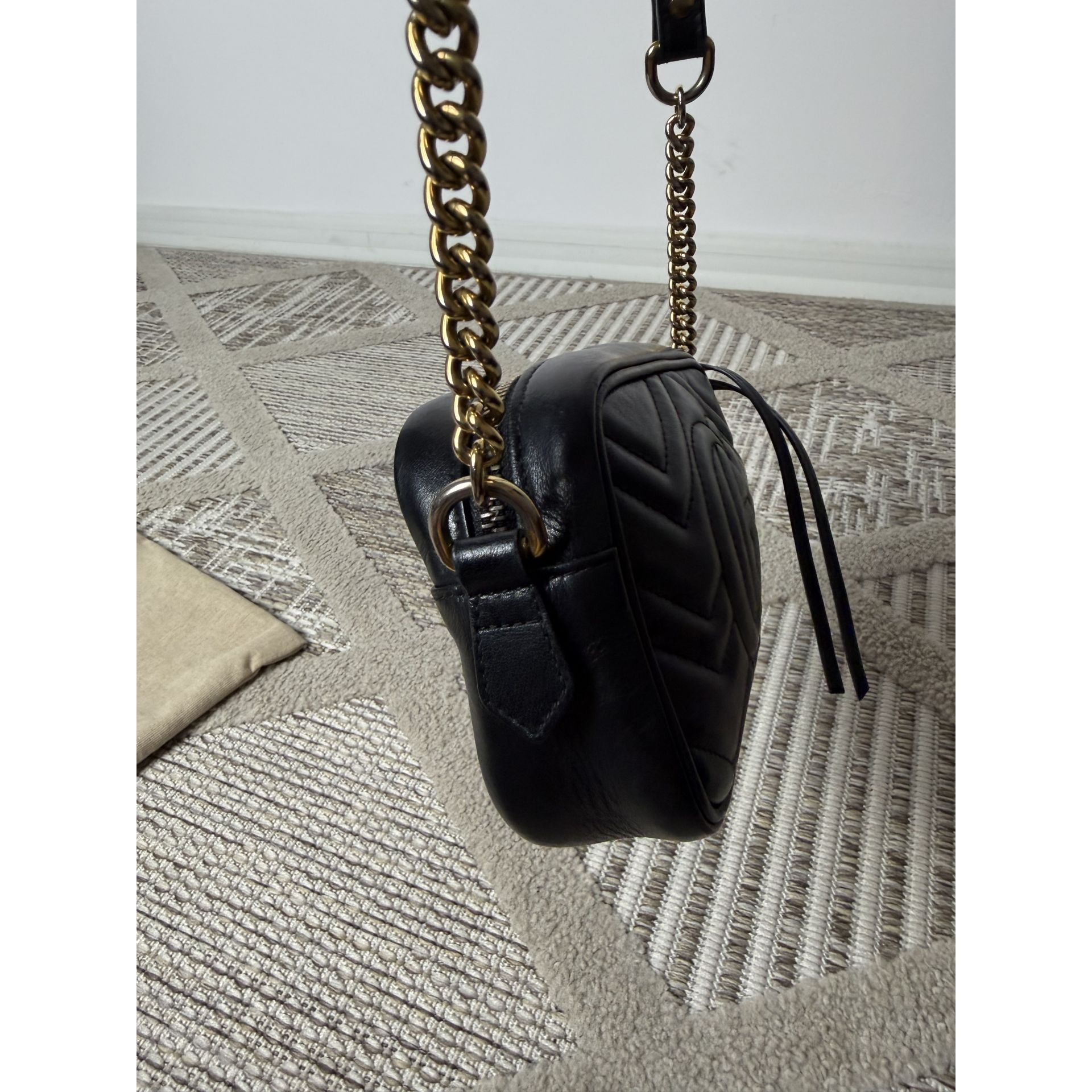 Ikoniczna torebka z linii GG Marmont w rozmiarze mini, wykonana z miękkiej, pikowanej skóry w charakterystyczny wzór chevron. Model w ponadczasowej czerni, wykończony złotymi elementami i logo GG na froncie.