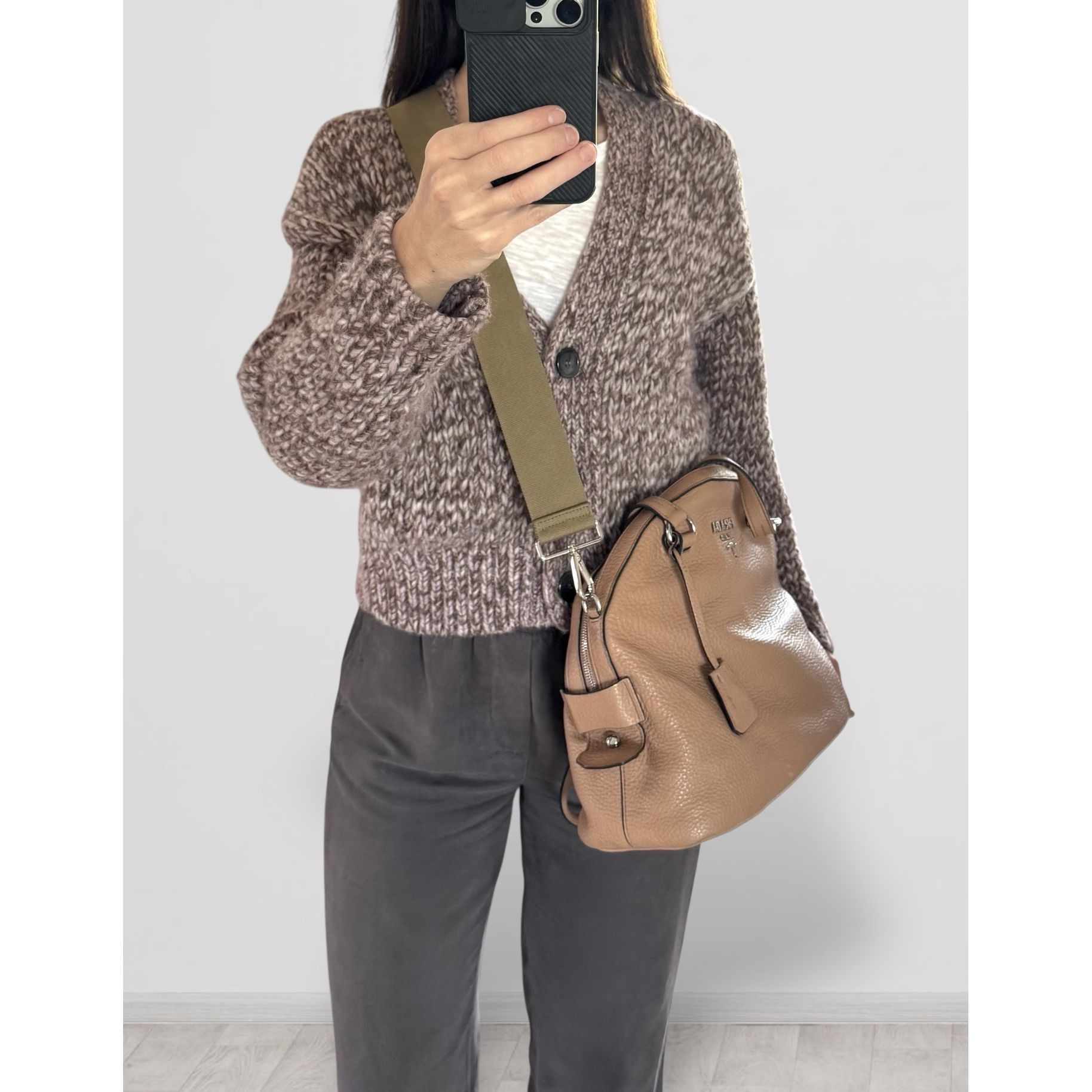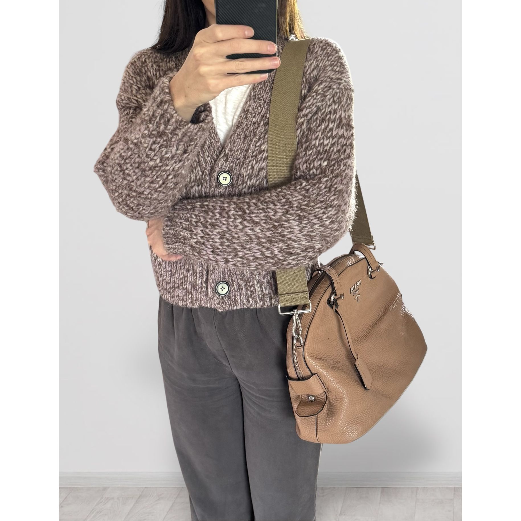 ▪️Kolor skóry to ciepły beż/jasny brąz, kolor paska - jasny khaki.