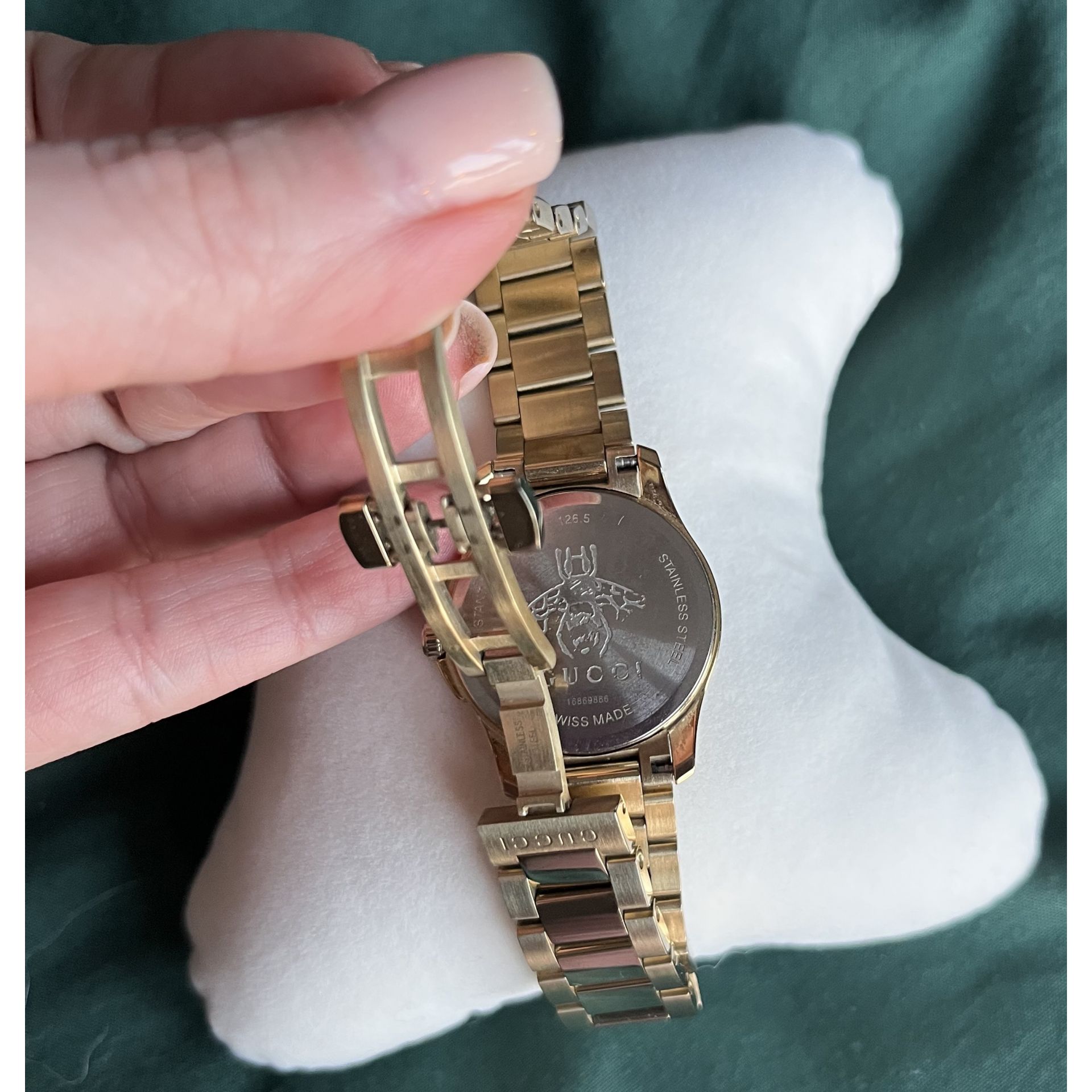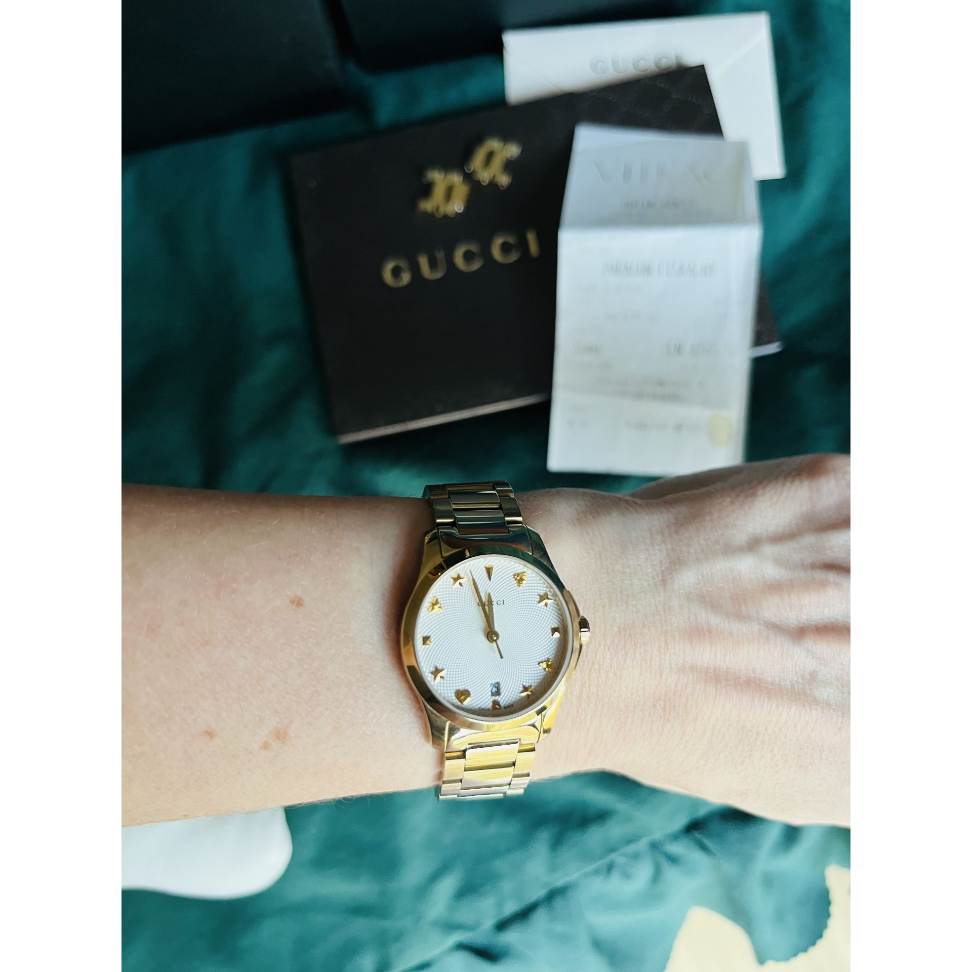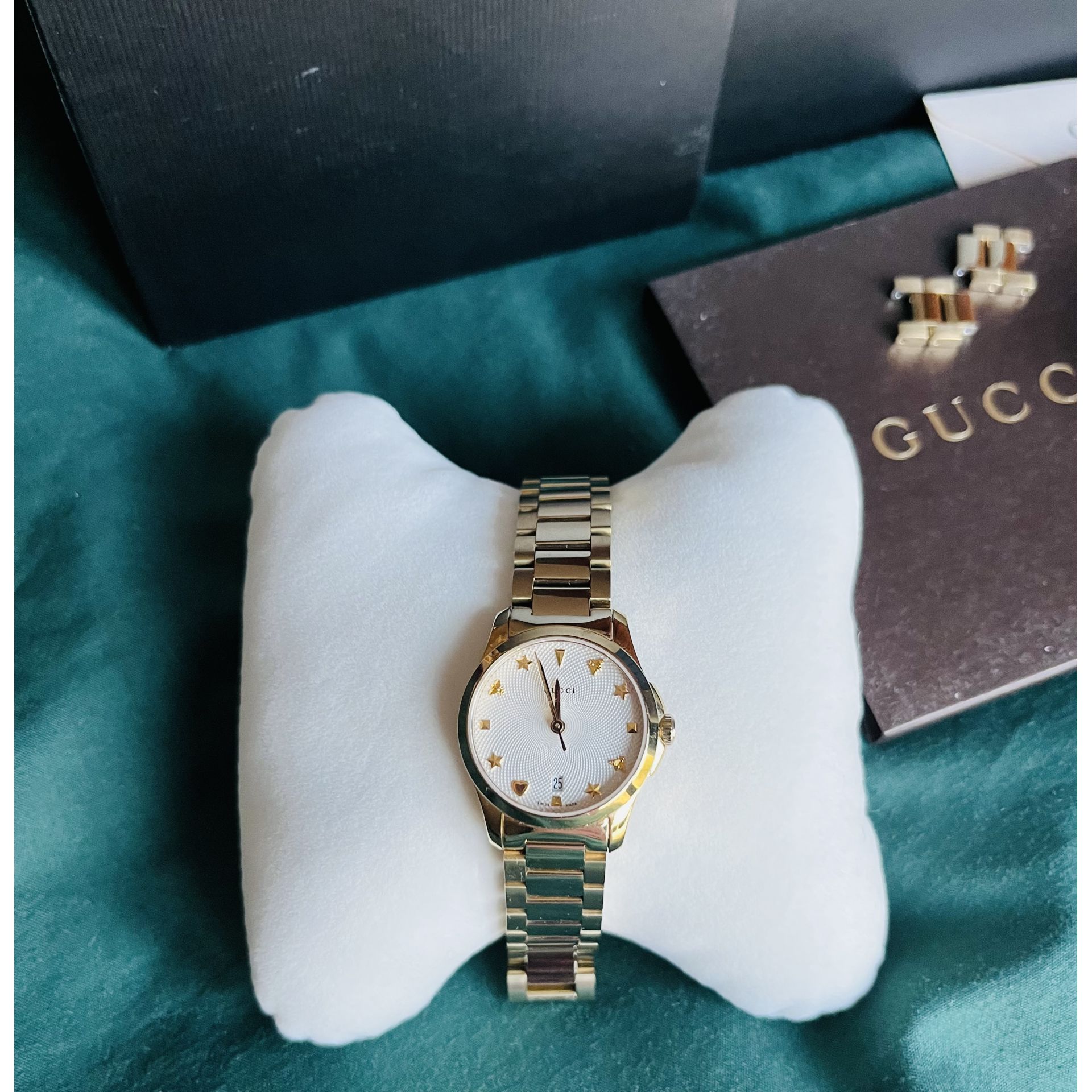 Złoty zegarek Gucci, rozmiar 27 mm.